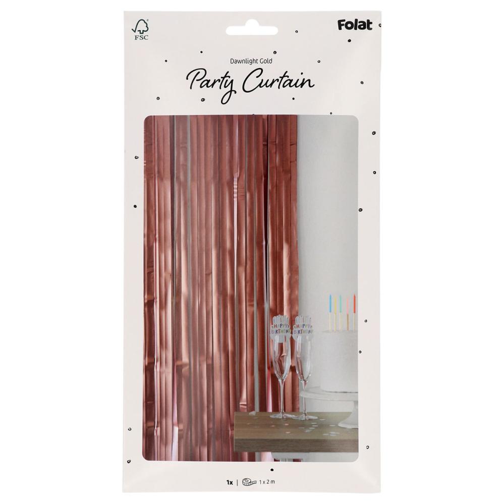 Juhlaverho Matta Ruusukulta 200x100 cm koostuu juhlavasta oviverhosta, jossa on pitkät suikaleet elegantissa, mattapintaisessa ruusukullanvärissä.