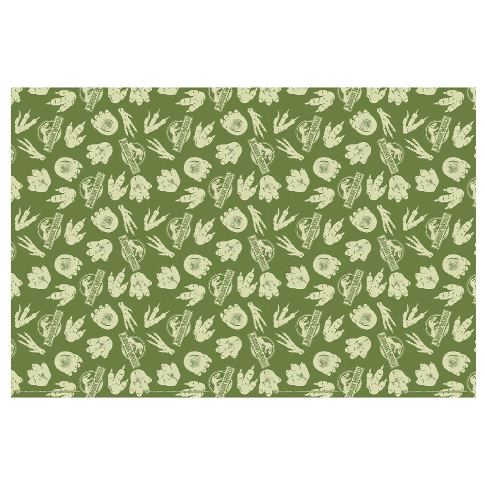 Jurassic World Paperipöytäliina 180 x 120 cm koostuu vihreästä paperipöytäliinasta, jossa on viidakon inspiroima design, ja sitä koristavat Jurassic Worldin logo ja dinosauruksen jalanjäljet.