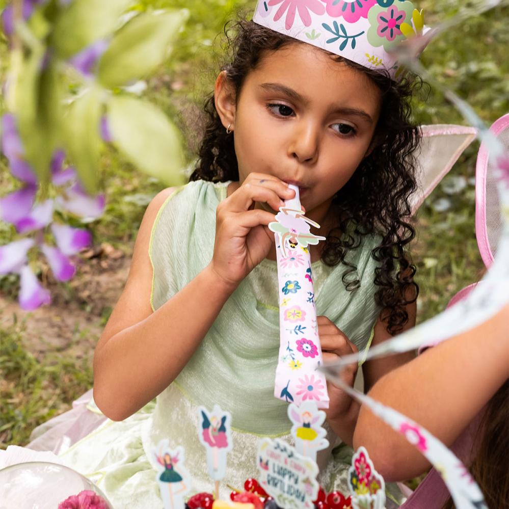 Tee keijuteemaisesta juhlastasi taianomainen näillä vaaleanpunaisilla juhlapilleillä. Jokaisessa lastenjuhlapillissä on tanssiva keiju ja värikkäitä kukkia. Täydelliset käärmepillit keijujuhliin, jotka todella erottuvat edukseen.