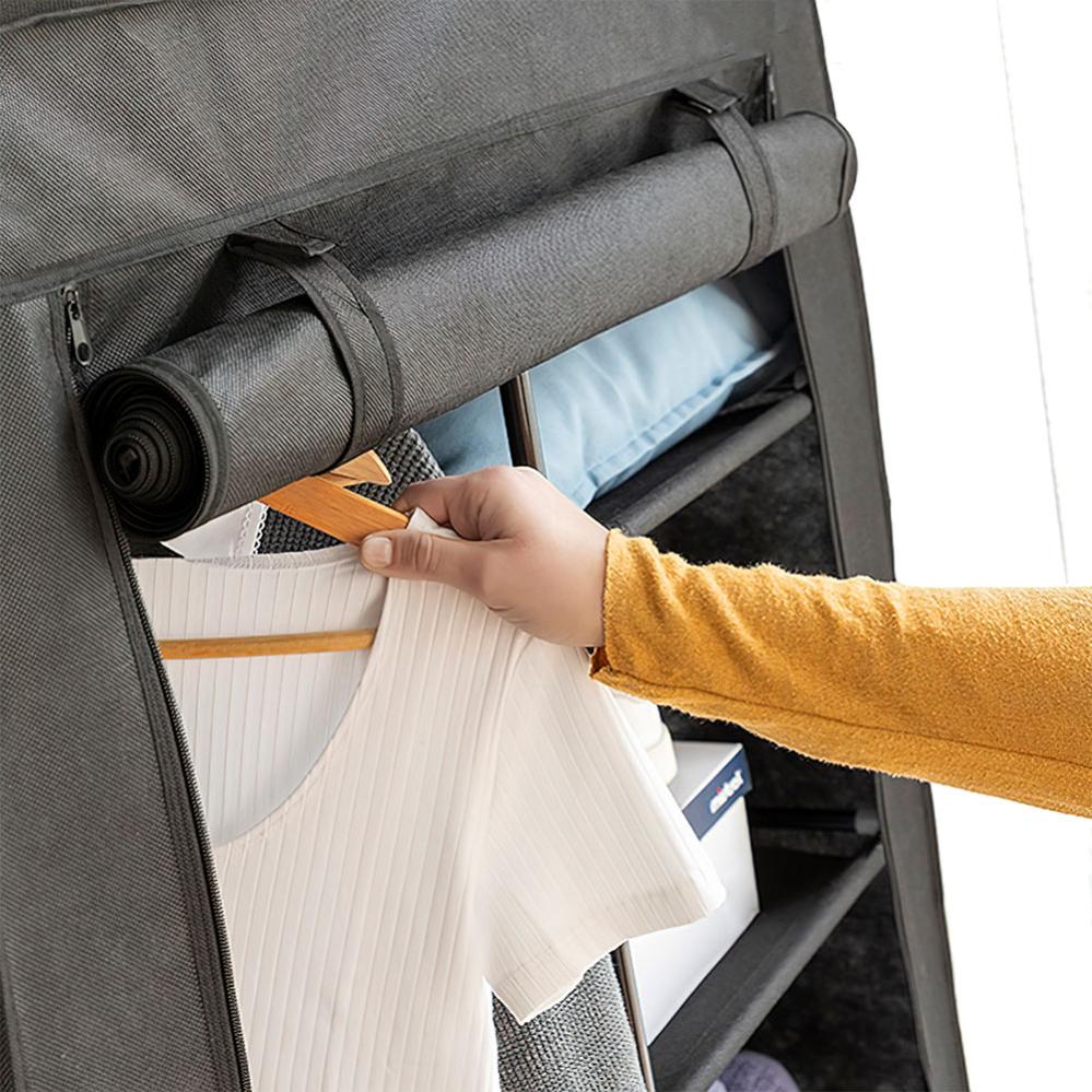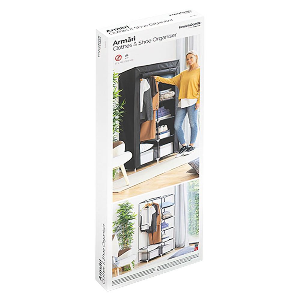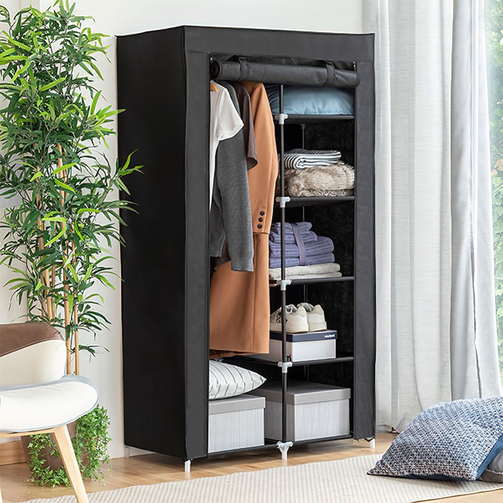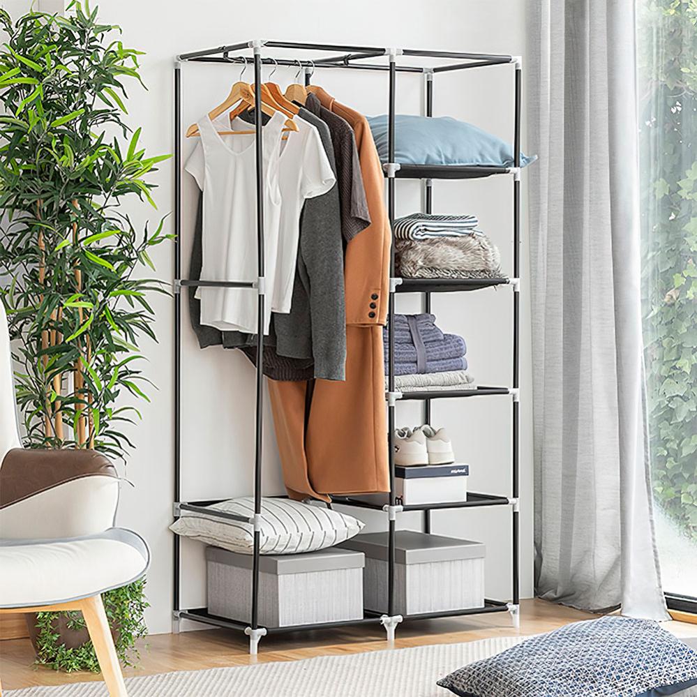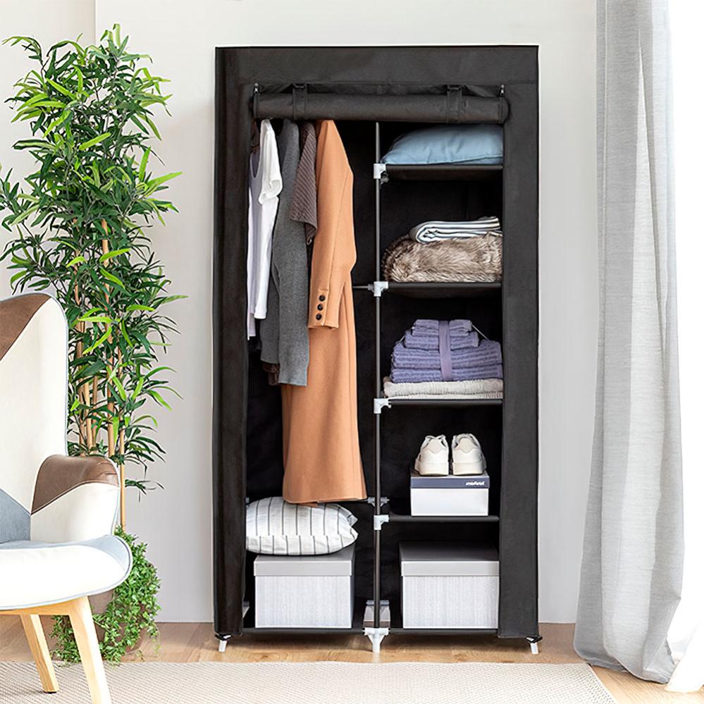 Pidä vaatteesi siistinä ja järjestä vaatteet ja kengät, tämän kätevän kangas vaatekaapin avulla! Todella kätevä vaatekaappi, jossa viisi hyllyä, kätevä vaaterekki henkareille ja vastaaville. Tämä nerokas vaatekaappi on erinomainen vaatteiden säilytykseen, sekä kotiin että matkalle.