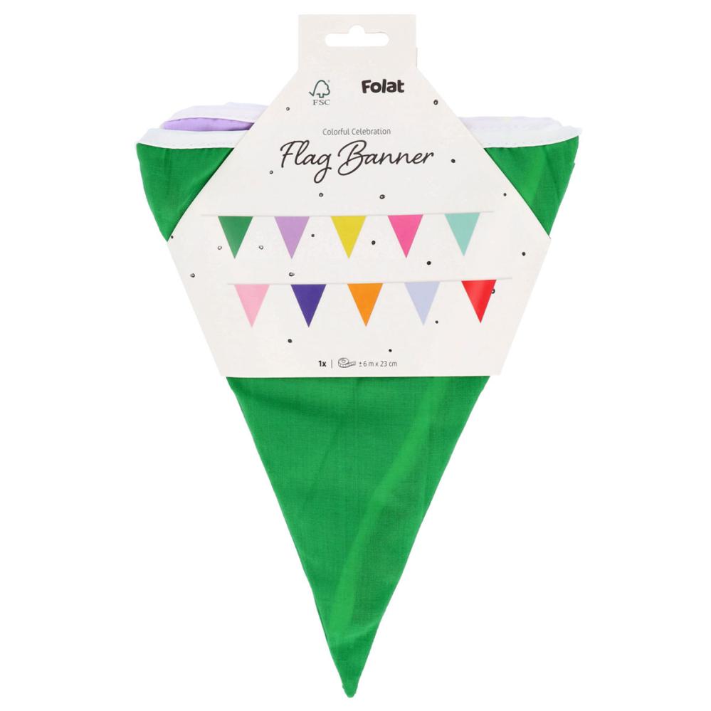Kangasviirinauha Monivärinen 6 m sisältää kangasviirinauhan, jossa on kymmenen eriväristä viirilippua. Lippujen välissä on 11 cm väli ja molemmissa päissä 1,5 metriä tilaa ripustamista varten. Viimeinen lippu toimii myös pussina, jossa muita lippuja voidaan säilyttää.