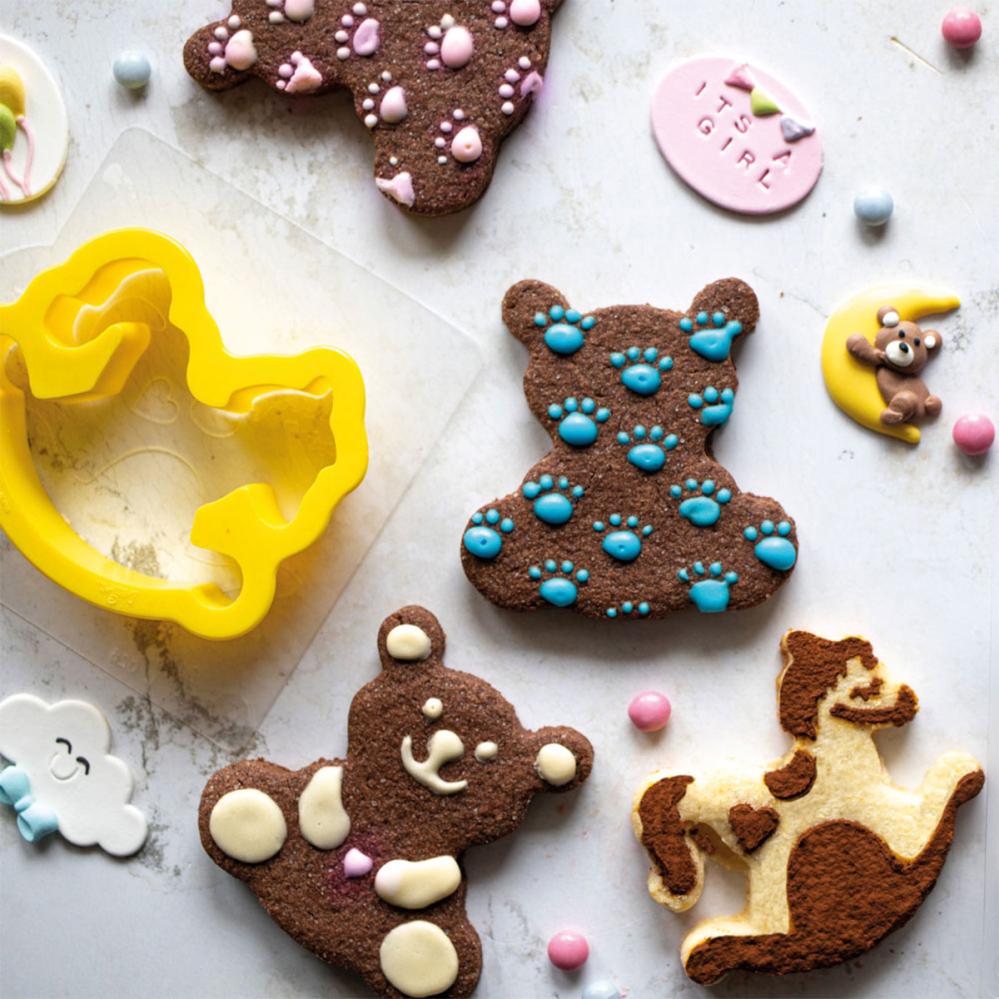 Värikäs leivontasetti keksimuoteilla sekä leivontamalleilla, joita lapset rakastavat, tekee juhlavien kuvioiden luomisesta helppoa. Täydellinen eläinteemaisiin juhliin, joissa luova leivonta on keskiössä. Sopii hyvin myös vauvajuhliin.