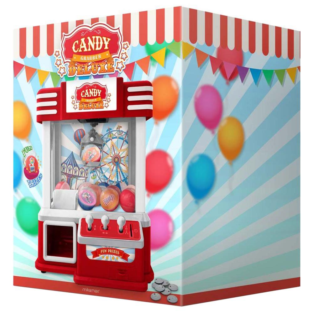 Karkkikone Kynsillä Deluxe sisältää karkkiannostelijan sekä kaksitoista kolikkoa, kymmenen palkintopalloa ja kuusitoista korttia, jotka laitetaan palkintopalloihin. Siinä on myös valot ja musiikki säädettävällä äänenvoimakkuudella, ja se saa virtansa joko USB-kaapelista tai 3 x AA paristoista.
