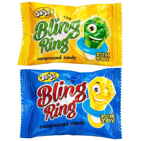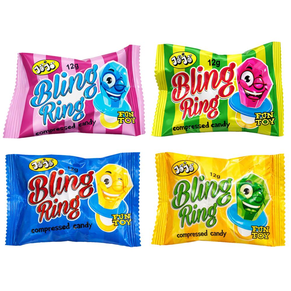Karkkirengas 12 g on muovisormus, jossa on 12 grammaa timantin muotoon tehtyä karkkia. Sitä on neljää eri vaihtoehtoa.