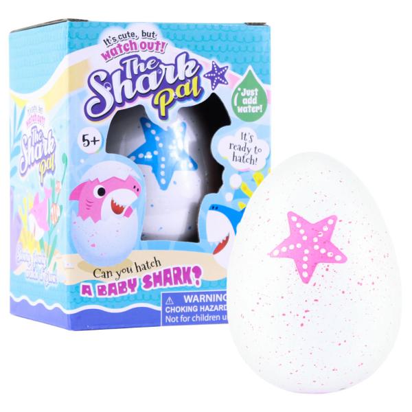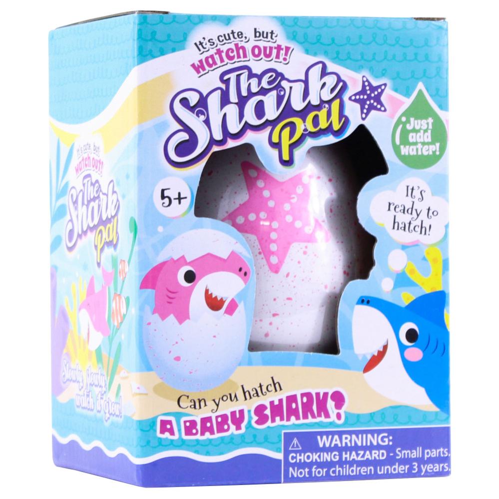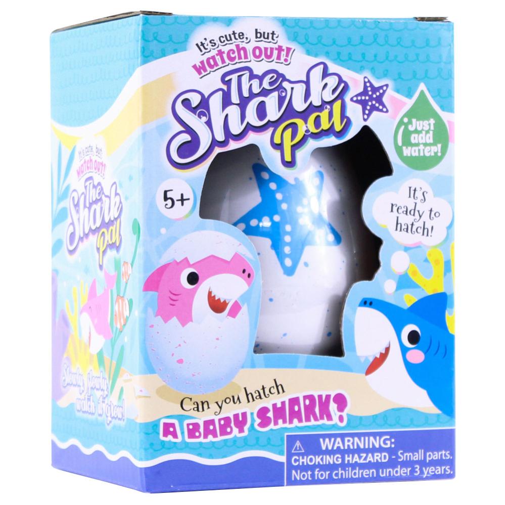 Growing Baby Shark Toy koostuu munasta, joka sisältää hain, joka kasvaa ja kuoriutuu vedessä. Hain muna on noin 10 cm korkea ja sitä suositellaan 5-vuotiaille ja sitä vanhemmille lapsille. Se, minkä värin saat, tulee yllätyksenä.