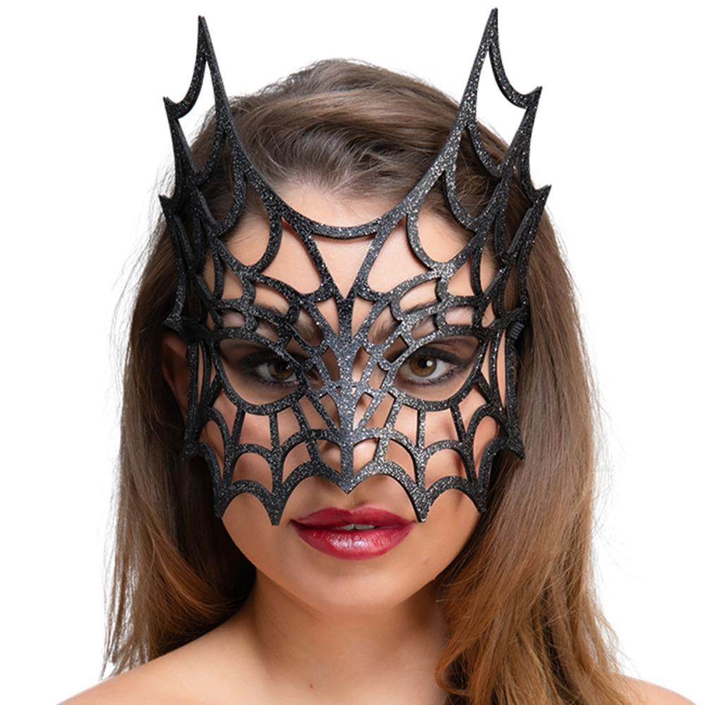 Luo juhlaan tyyli mustalla silmänaamiolla, jossa on kimalteleva hämähäkinverkkokuvio. Tämä silmänaamio sopii täydellisesti Halloween naamiaisiin ja istuu mukavasti pehmeän materiaalin ansiosta, joka muotoutuu kasvojen mukaan.