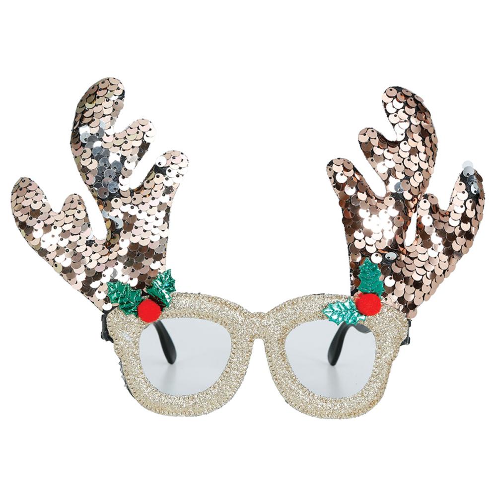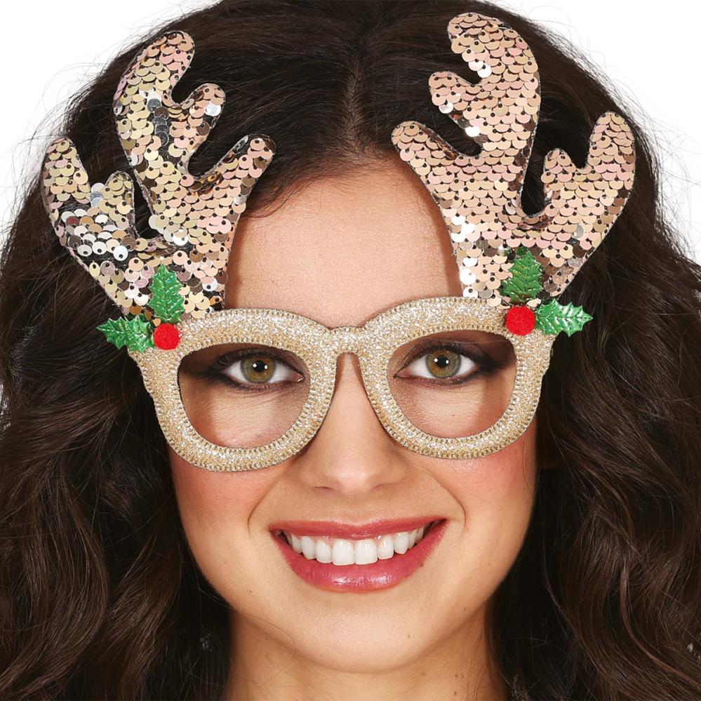 Kimaltelevat Silmälasit Poronsarvilla ovat lasit, joissa on kullanvärinen, kimalteleva etuosa. Jokaisen sangat on koristeltu poronsarvella, joka on päällystetty ruusukultaisilla paljeteilla. Jokaisen sarven tyvessä on pieniä koristeellisia yksityiskohtia, kuten orjanlaakerinlehtiä ja punaisia marjoja.