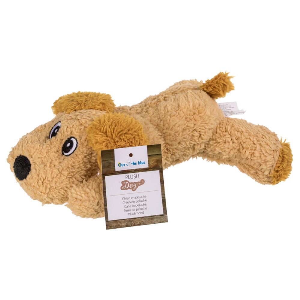 Koiran pehmolelu sisältää pehmeän beigen pehmolelun, joka on koiran muotoinen. Täytetty eläin on noin 20 cm pitkä ja valmistettu polyesteristä.