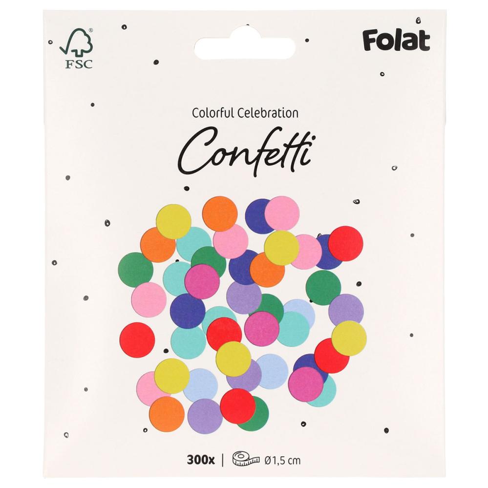 Luo värikkäitä juhlakoristeita näillä pyöreillä monivärisillä konfeteilla. Kymmenen eri värin 300 ympyrän avulla luot nopeasti oikean tunnelman juhliin, bileisiin tai minkä tahansalaiseen juhlintaan.