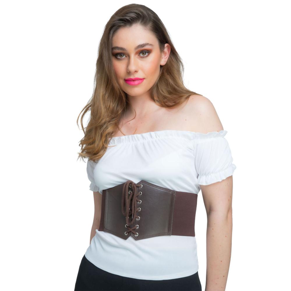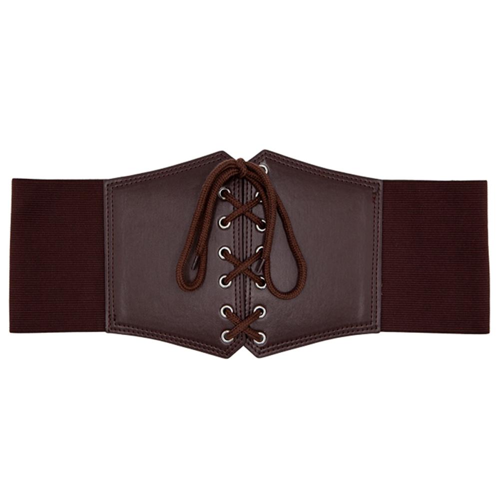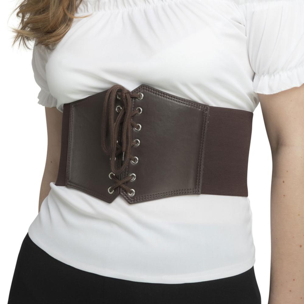 Tämä ruskea korsettivyö tukee ja korostaa vyötäröä huomaamattomasti. Se sopii paidan tai mekon päälle ja sitä voi käyttää mukavasti sekä arjessa että juhlassa.