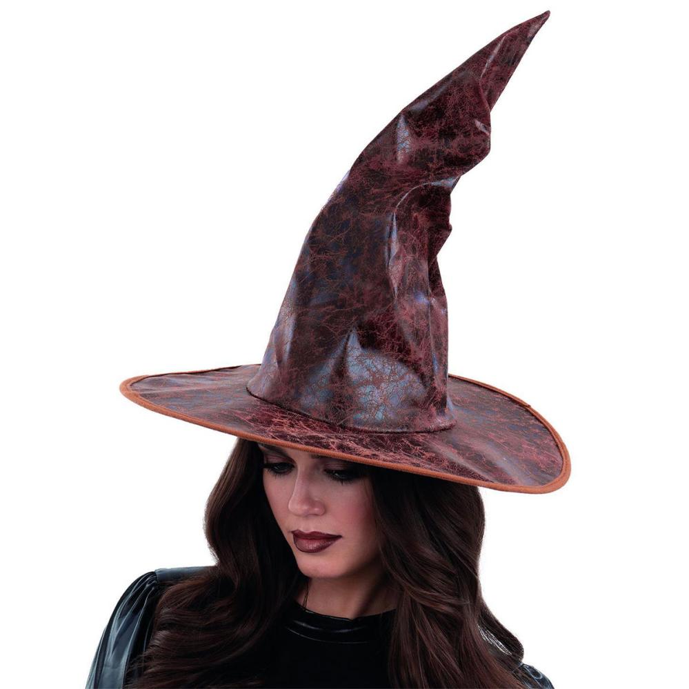 Anna naamiaisasullesi mystinen säväys tällä kuluneen nahan näköisellä velhohatulla. Se on täydellinen Halloween-hatuksi tai velhoasun asusteeksi aidon ilmeen luomiseksi, ja se pitää muotonsa koko illan.