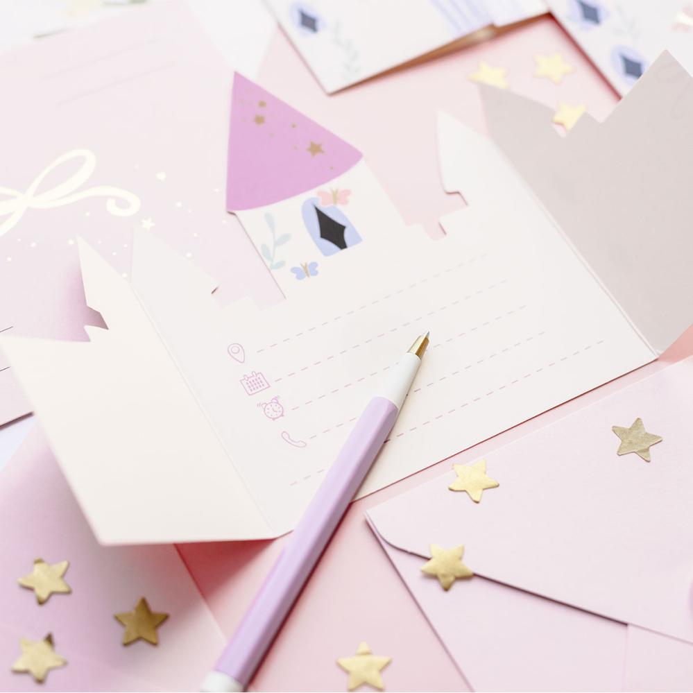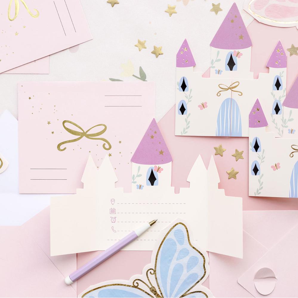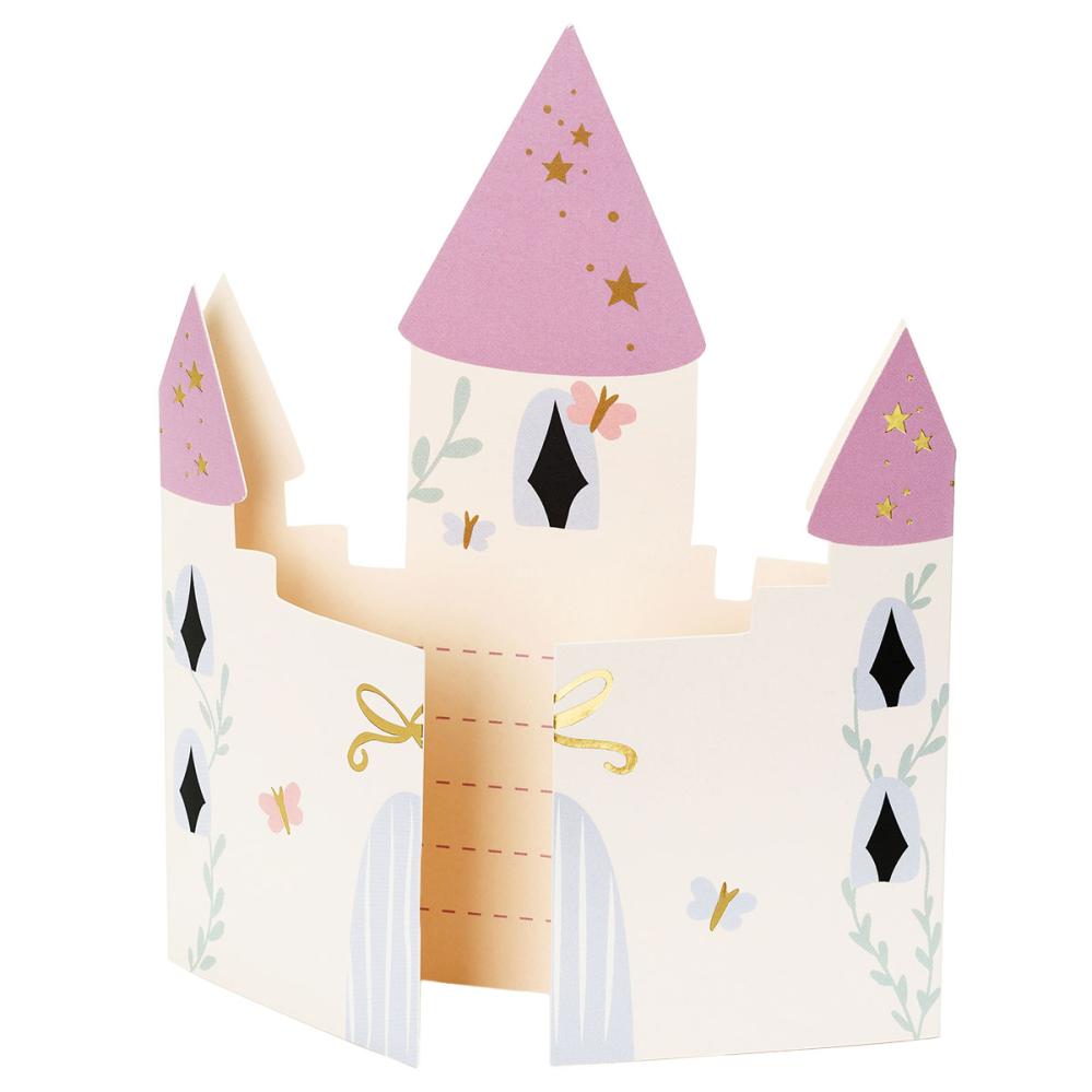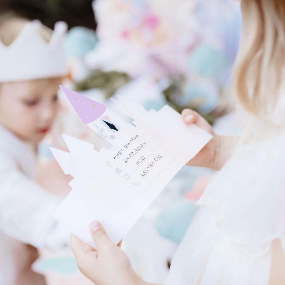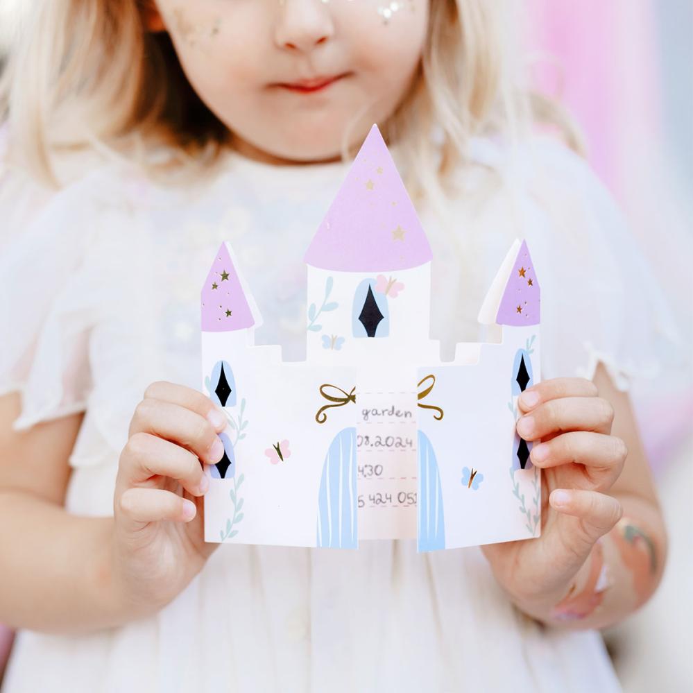 Prinsessajuhliin linnakuvioinen kutsukortti antaa juhlavan aloituksen. Prinssi- ja prinsessajuhliin sopivan kutsun valitseminen luo oikean tunnelman juhlaan. Selkeän teeman ansiosta prinsessajuhlistasi tulee täydelliset. Lisäksi tämä prinsessateema tuo juhliin lisää tunnelmaa.