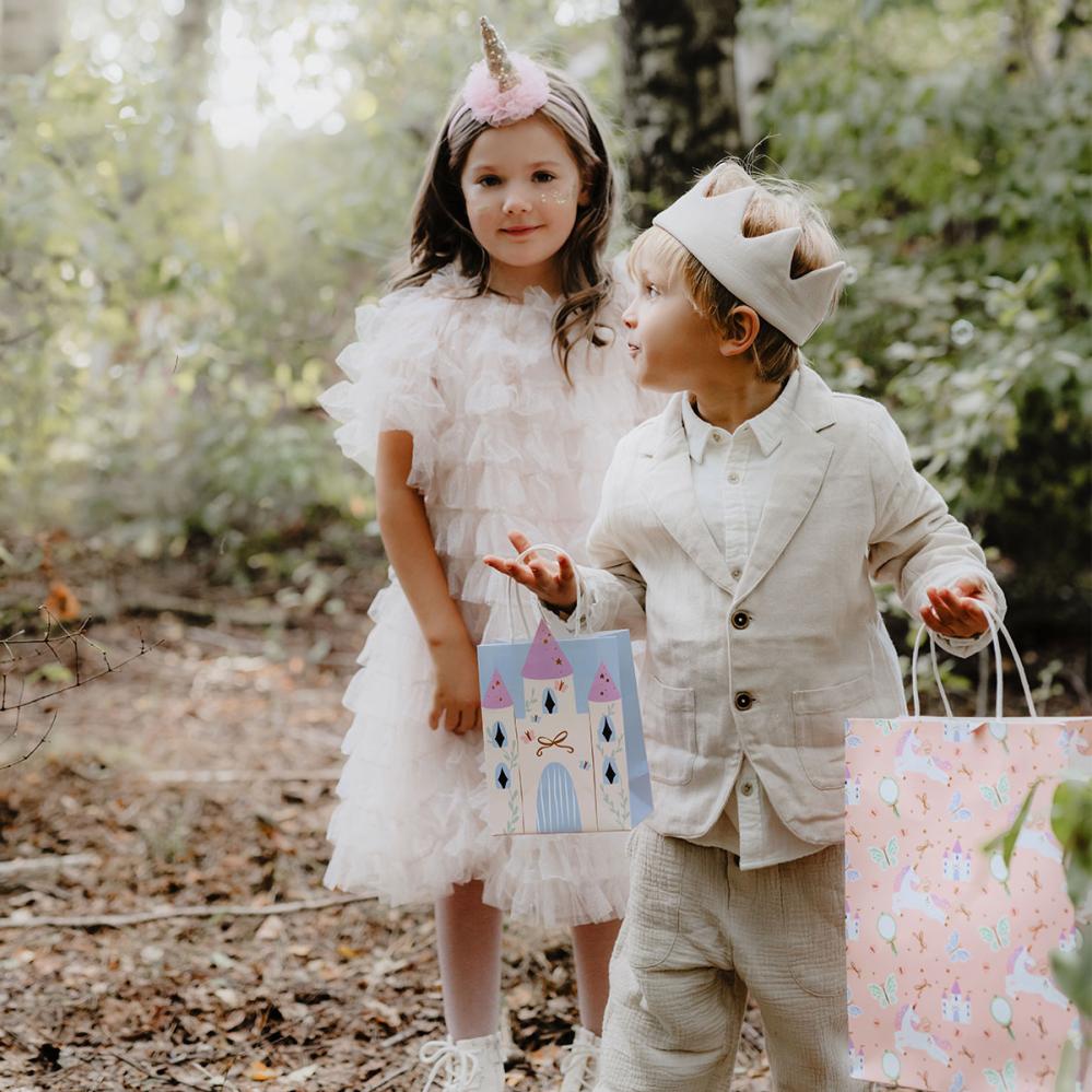 Lapset arvostavat lahjapussia, jossa on linnakuvio, erityisesti silloin, kun se sopii täydellisesti prinssi ja prinsessajuhliin, joissa mielikuvitukselliset leikit saavat tilaa. Prinsessajuhlissa teema täydentyy oikealla lahjapussilla. Tämä tarvike sopii erinomaisesti myös silloin, kun juhlissa toivotaan klassista prinsessateemaa.