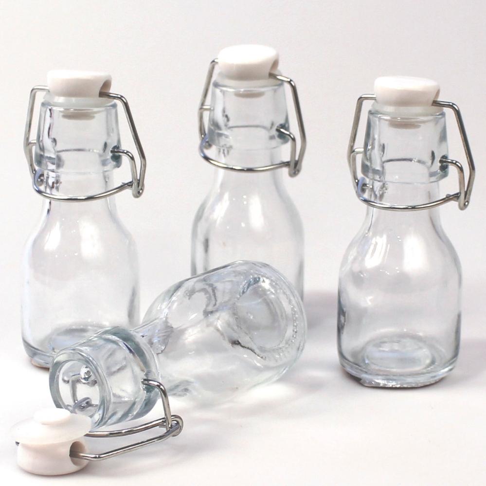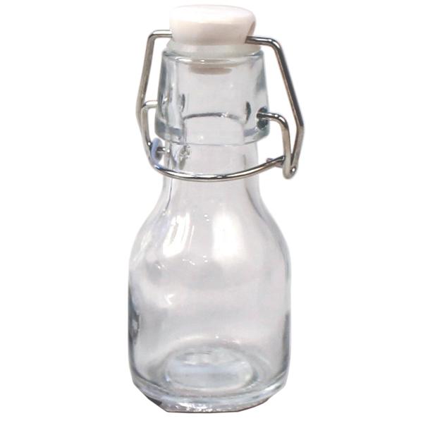 Lasipullo Patenttikorkilla 4,5 x 11 cm koostuu pienestä säilytys- ja tarjoilupullosta, jossa on uudelleensuljettava sankakorkki, joka on kiinni pullossa.
