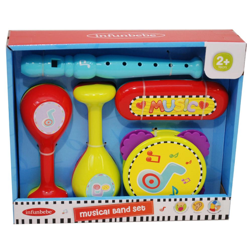 Lasten Musiikki-instrumenttileluja 5-kpl käsittää setin, jossa on viisi värikästä soitinta lapsille.