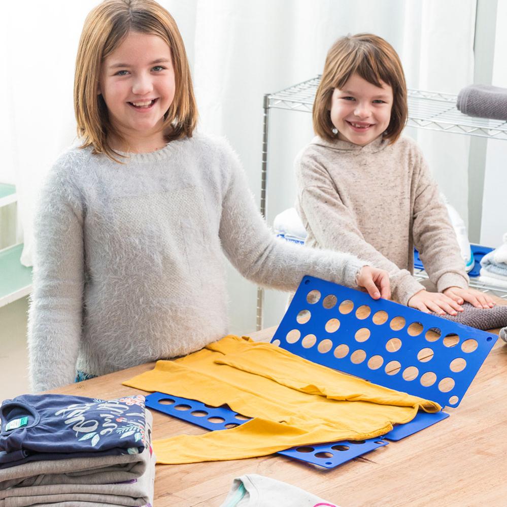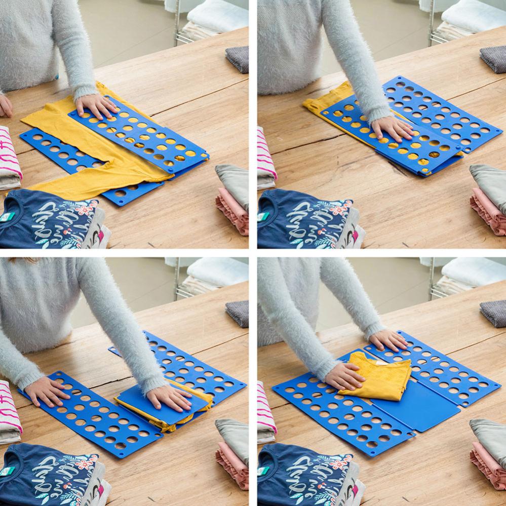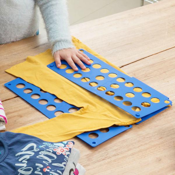 Taita lasten vaatteet todella siististi ja siististi tällä älykkäällä lastenvaatekansiolla! Tällä vaatekansiolla voit taittaa neuleet, t-paidat, housut, mekot ja muut vaatteet hetkessä, sinun tarvitsee vain laittaa vaatteet vaatekansioon ja taittaa vaatekansion ja vaatteen eri osat on täydellisesti taitettu. Lyhyesti sanottuna erinomainen vempain jokaiselle, joka haaveilee hyvin järjestetyistä vaatekaapeista todella siististi taitetuilla vaatteilla.