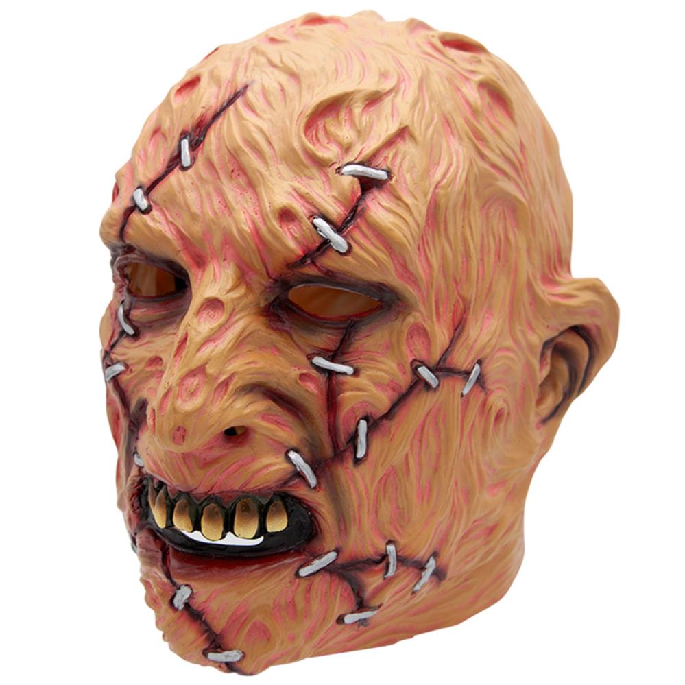 Lateksinaamio Ommelluilla Haavoilla on beige lateksinaamio, jossa on realistisia ommeltuja haavoja sekä keltaisia hampaita paljastava hymy. Maskissa on reiät silmille, nenälle, korville sekä suulle, ja se peittää sekä kasvot että pään yläosan.