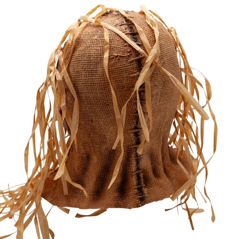 Lateksinaamio Variksenpelätin on beige, koko pään peittävä naamio, joka esittää variksenpelättimen päätä. Se on koristeltu paperisuikaleilla ja siinä on reiät silmille ja nenälle.