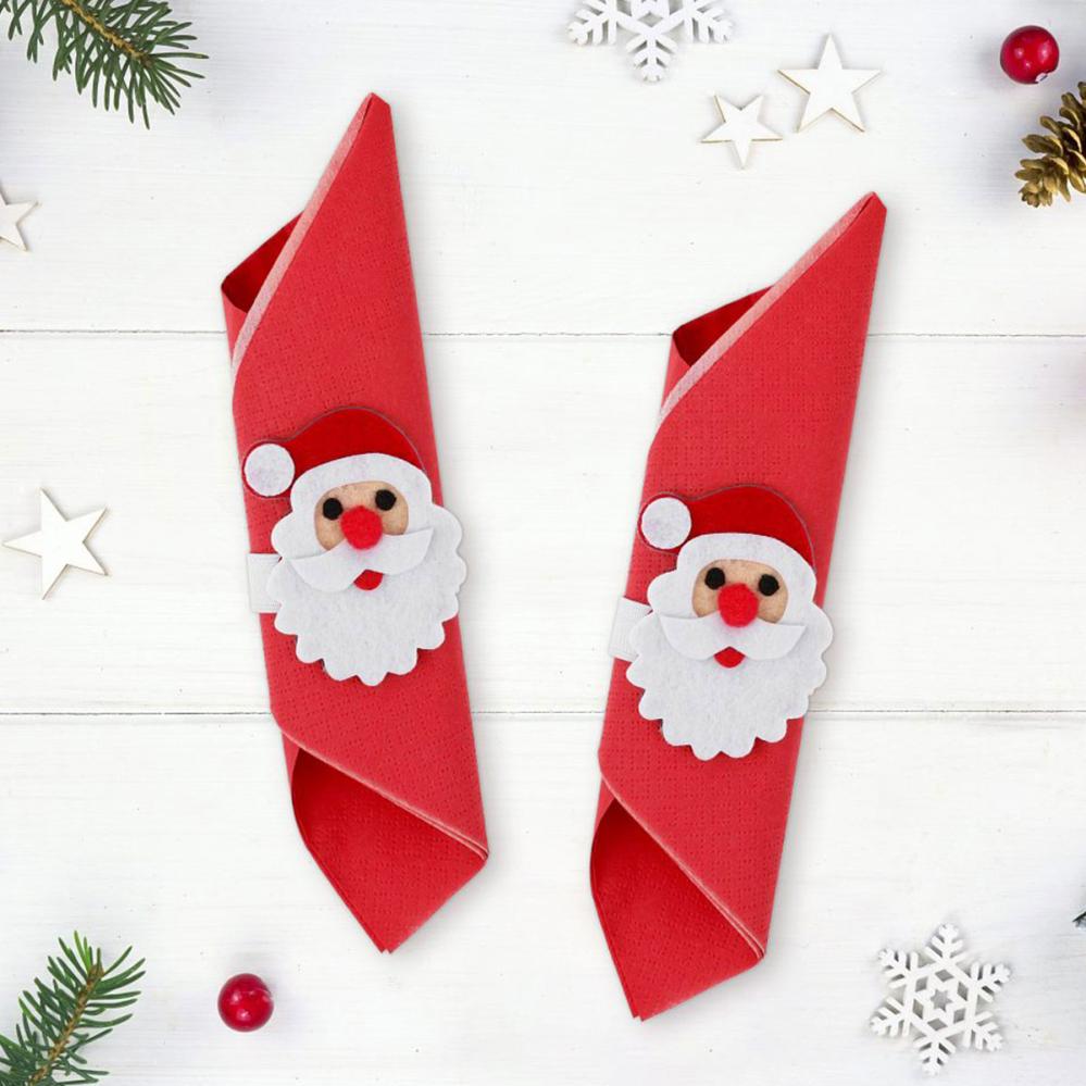 - Lautasliinarenkaat, jotka on muotoiltu joulupukin pääksi