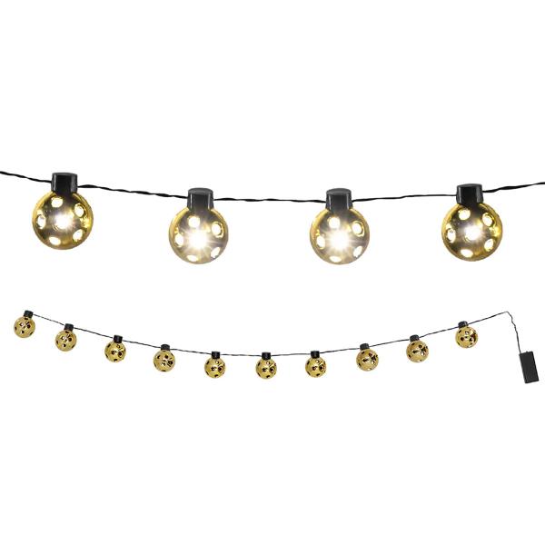Tämä valosarja kultaisilla palloilla luo tunnelmallisen valaistuksen, sopii juhliin ja toimii myös uudenvuoden koristeena. LED-lamput antavat kirkkaan mutta miellyttävän valon. Se on helppo sijoittaa sisätiloihin ja luo pehmeän valon pöydän ylle.
