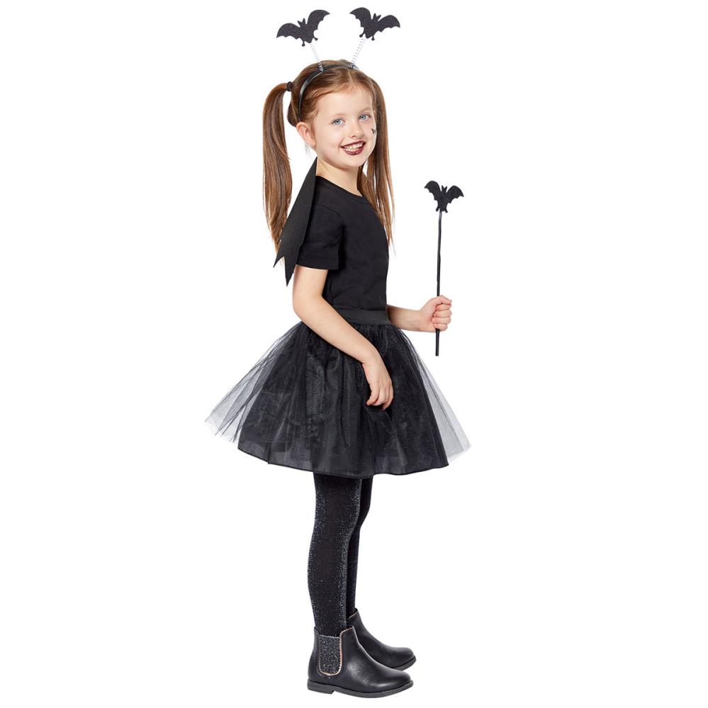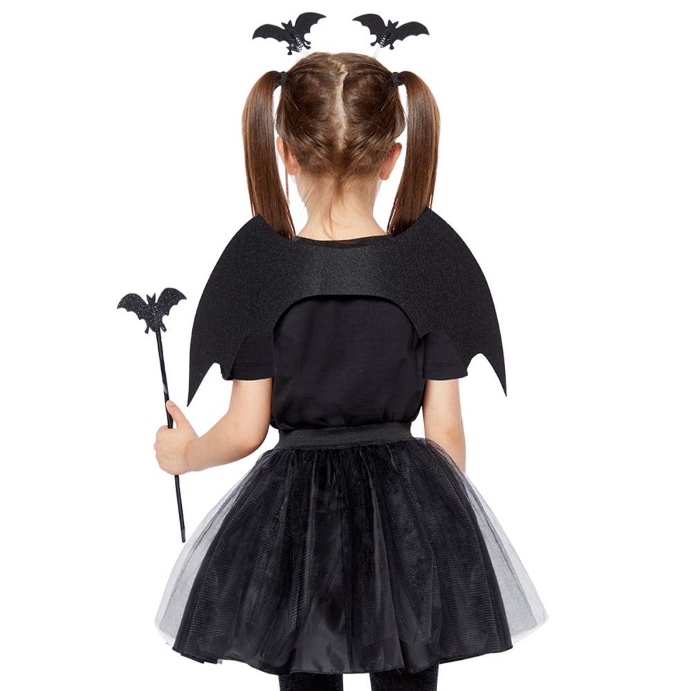 Muuta Halloween-juhlinta tämän lasten lepakkoaiheisen tarvikepaketin avulla. Tämä lepakkoaiheinen tarvikepaketti on täydellinen lepakkopukuun ja sisältää hauskoja Halloween-asusteita, kuten siivet ja diadeemin. Tämä lepakkoaiheinen setti on taatusti täydellinen naamiaisasuste Halloweeniin.