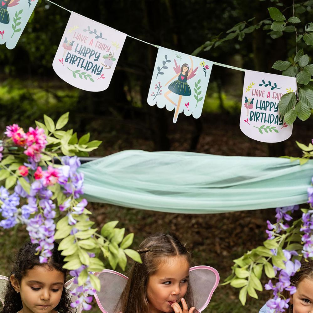 Luo taianomainen tunnelma keijuteemaisille juhliille tällä ripustettavalla viirinauhakoristeella. Siinä on 16 lippua ja hurmaavia kuvioita, ja siitä tulee rakastettu osa lasten juhlakoristeita. Se sopii täydellisesti juhlatarvikkeisiisi satumaisia juhlia varten.