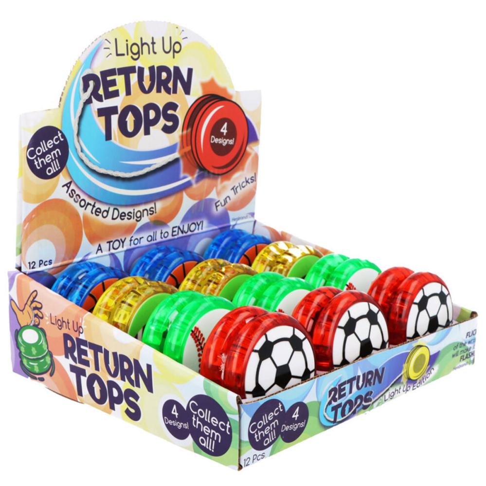 Loistava Jojo Urheilupallot sisältää jojon, jossa on urheilupalloaihe molemmilla puolilla ja joka loistaa punaisena, kun sitä käytetään. Jojoa on vihreänä, sinisenä, keltaisena ja punaisena, ja jokaisessa värissä on oma kuvionsa. Myydään lajittelemattomana ja kappaleittain, joten saamasi väri on yllätys.