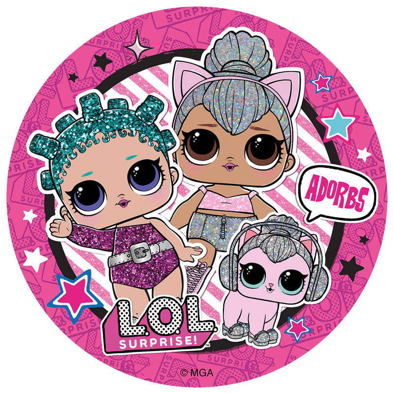 Luo Lol Surprise-kakku todella helposti ja kätevästi, tällä kakkukuvalla! Tämä kakkukuva on nimittäin heti käyttövalmis, vedä suojakalvo ja aseta se suoraan kakkuun ja se on siinä. Jos haluat saada lisäilmettä, voit koristella sitä kermalla tai jollain muulla herkulla, kakun reunoja myöten. Tällä sokerimassalevyllä voit helposti tehdä oman Lol Suprise kakun, alta aikayksikön.