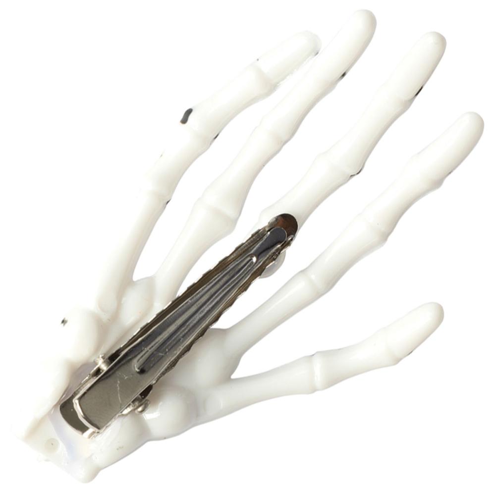 Anna naamiaisasuusi karmiva säväys Halloween-asusteella, joka on hiussolki, jossa on luurankokäsi. Valkoinen hiusklipsi, jossa luurankokäsi ja mustia yksityiskohtia, täydellinen Halloween-lisävaruste sinulle, joka haluat lisätä pelottavan mutta tyylikkään säväyksen hiusasusteisiisi.