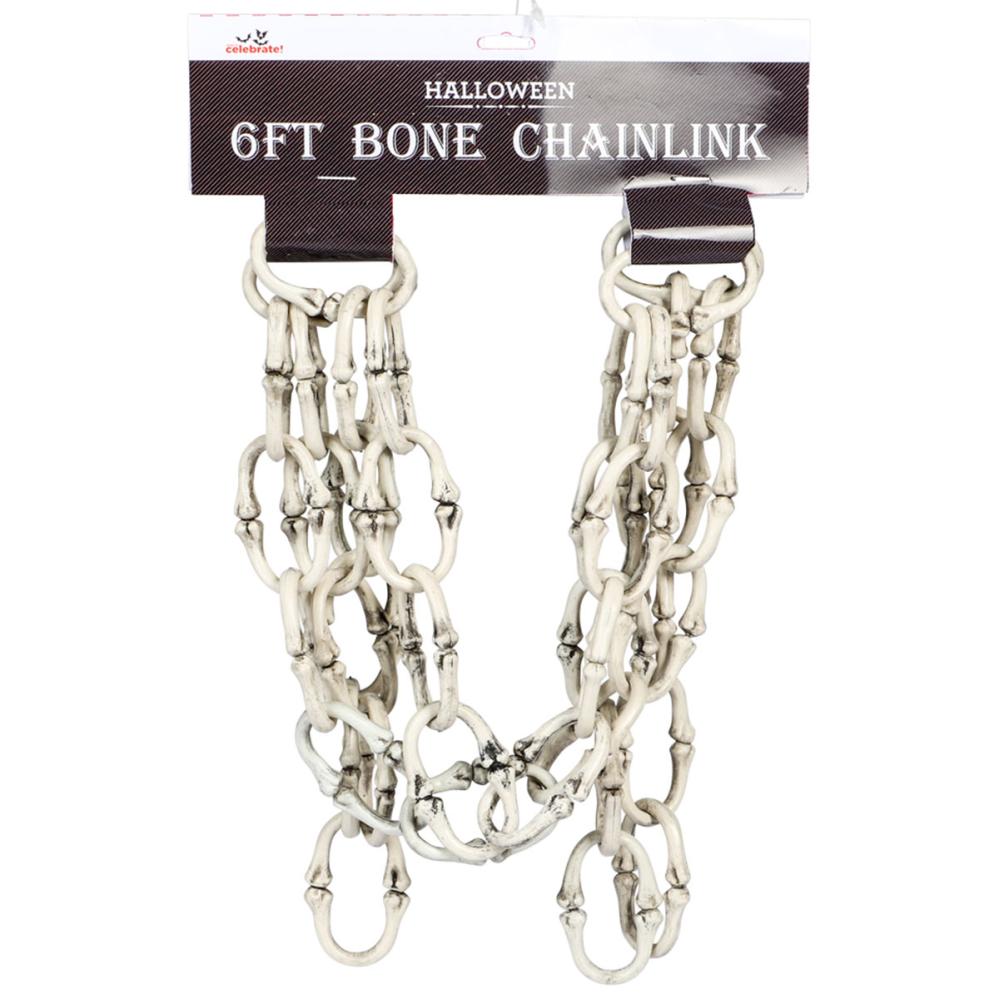 Luurankoketju Koriste 180 cm sisältää pitkän, realistisen ketjun, jossa on luurankoluita ja joka näyttää kuluneelta ja ikääntyneeltä. Se sopii täydellisesti naamiaisasun lisävarusteeksi tai karmivaksi halloween-koristeeksi.