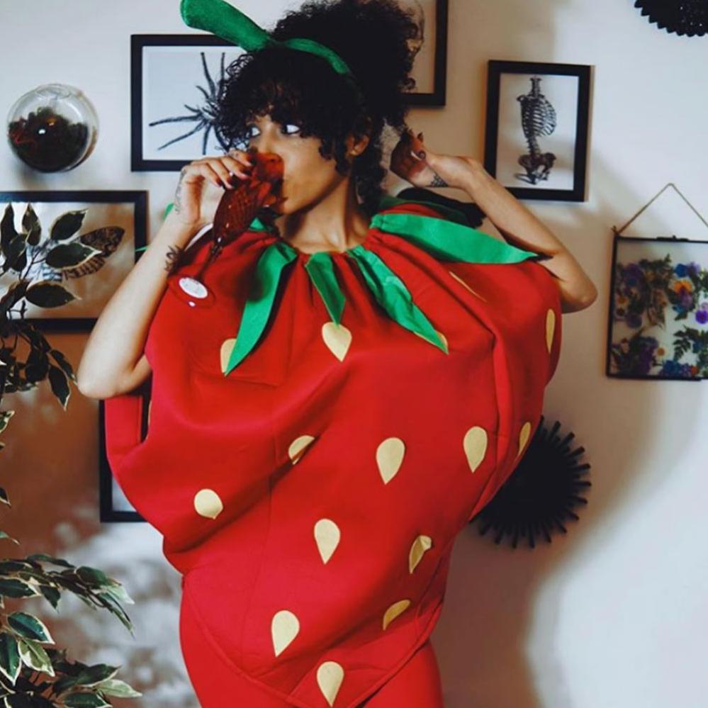 - Naamiaisasu mansikan muodossa