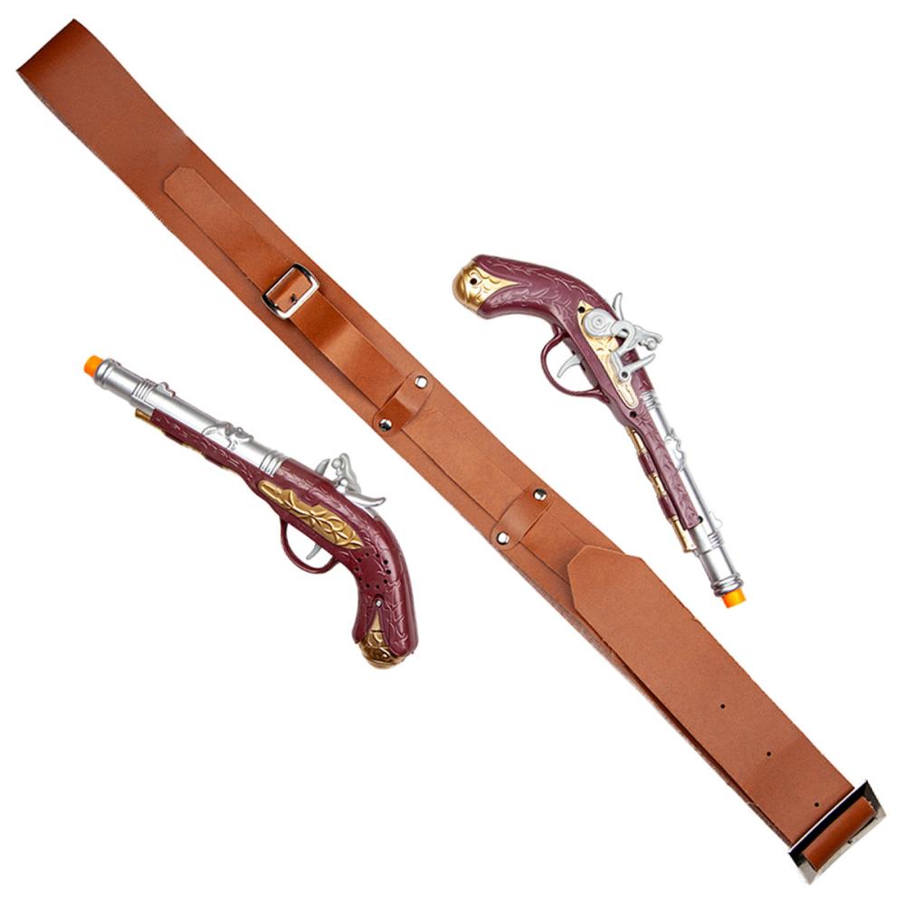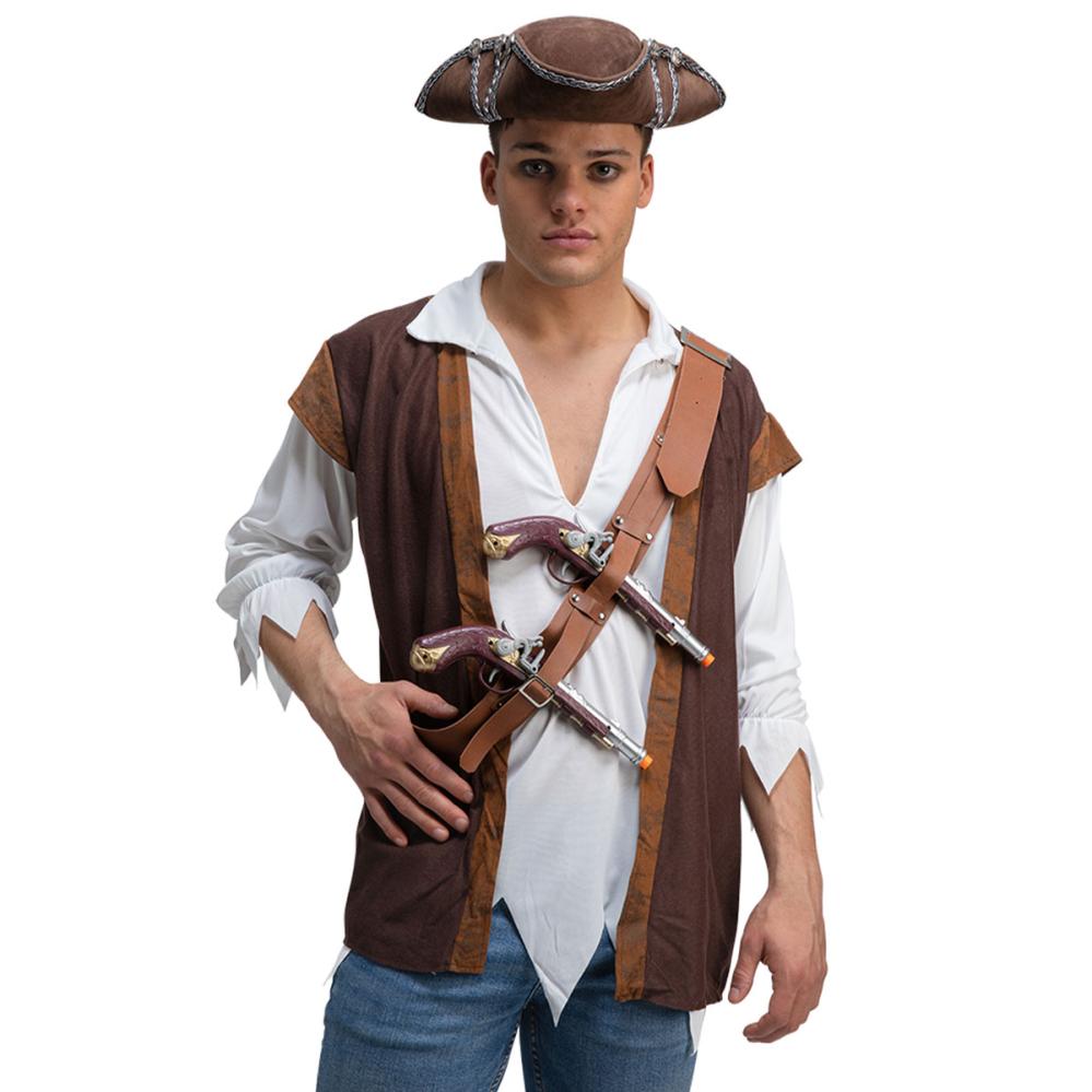 Täydennä piraattiteemaiset juhlasi tällä olkakotelolla ja kahdella yksityiskohtaisella muovisella piraattipistoolilla. Täydellinen piraattiasuste sinulle, joka haluat erottua seuraavissa naamiaisissa. Pistooleissa on klassisen piraattipistoolin ulkonäkö autenttisen ilmeen takaamiseksi.