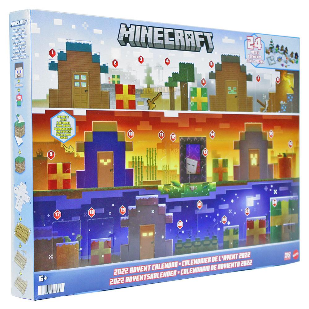 Tuotteeseen Minecraft Joulukalenteri A sisältyy omfattar värikäs Minecraft-joulukalenteri, jonka 24 luukussa on tarvikkeita ja hahmoja jouluisen Minecraft-maailman rakentamiseksi.