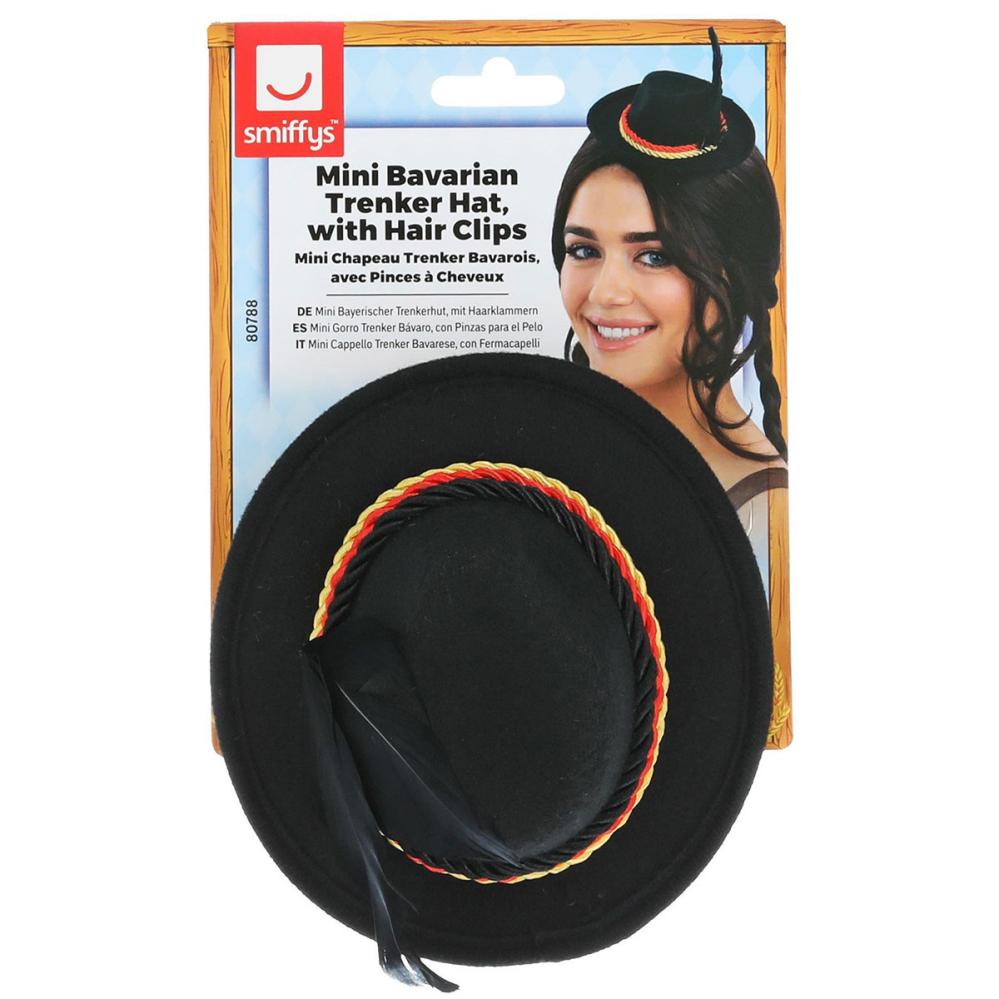 Viimeistele tyylisi tällä mustalla minitirolilaishatulla, täydellinen Oktoberfesthattuna tai asenteikkaana baijerilaisena hattuna. Hiusklipsien ansiosta se pysyy tukevasti koko juhlan ajan ja on täydellinen asuste Oktoberfestnaamiaisiin.