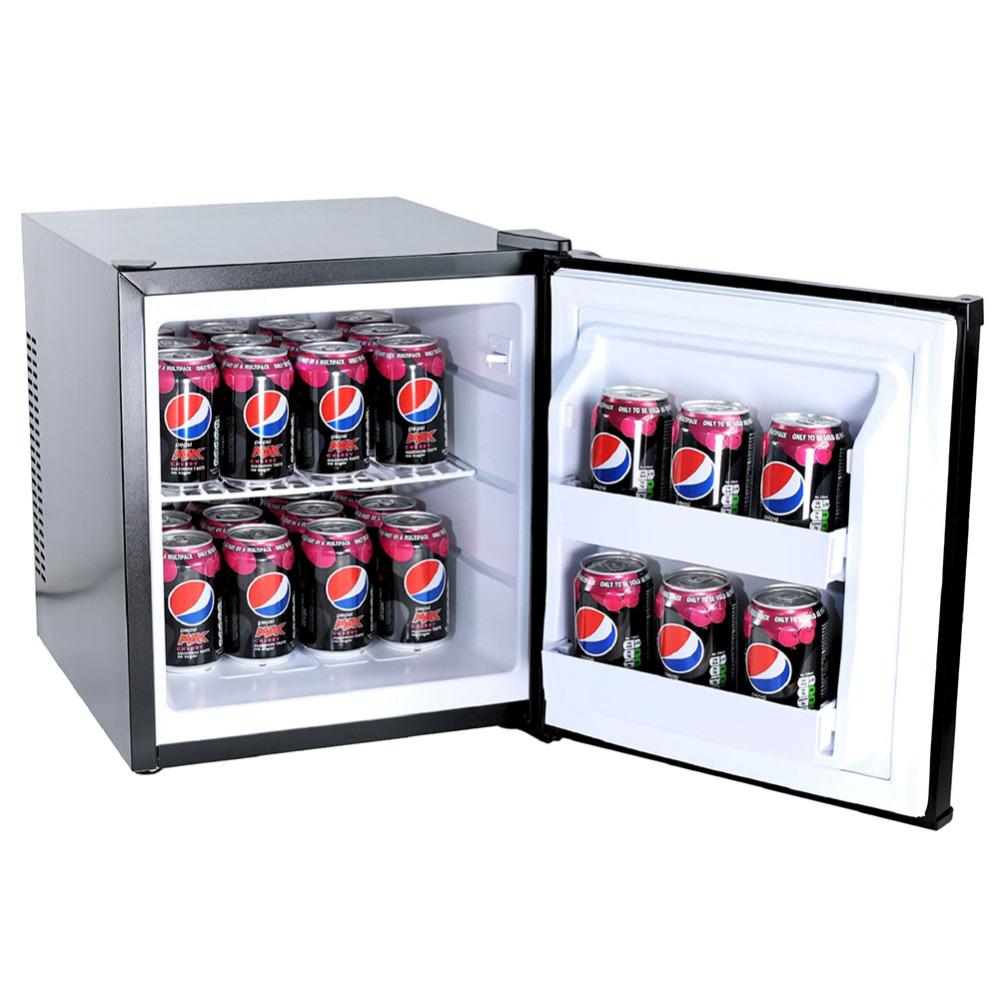 Minijääkaappi Musta 25 Litraa sisältää mustan minijääkaapin, jossa on säädettävä hylly. Jääkaappiin mahtuu noin 20 x 30cl pulloa, 30 x 33cl tölkkiä, 27 x 44cl tölkkiä tai 19 x 50cl pulloa.