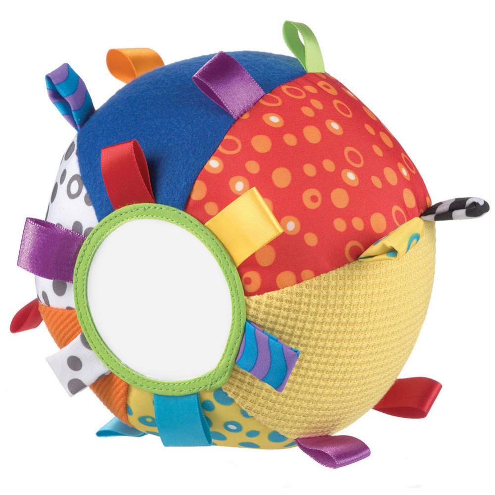 Monivärinen Pehmeä Pallo sisältää pehmeän monivärisen pallon, jonka sisällä on helistin, sekä peilin ja etiketit.
