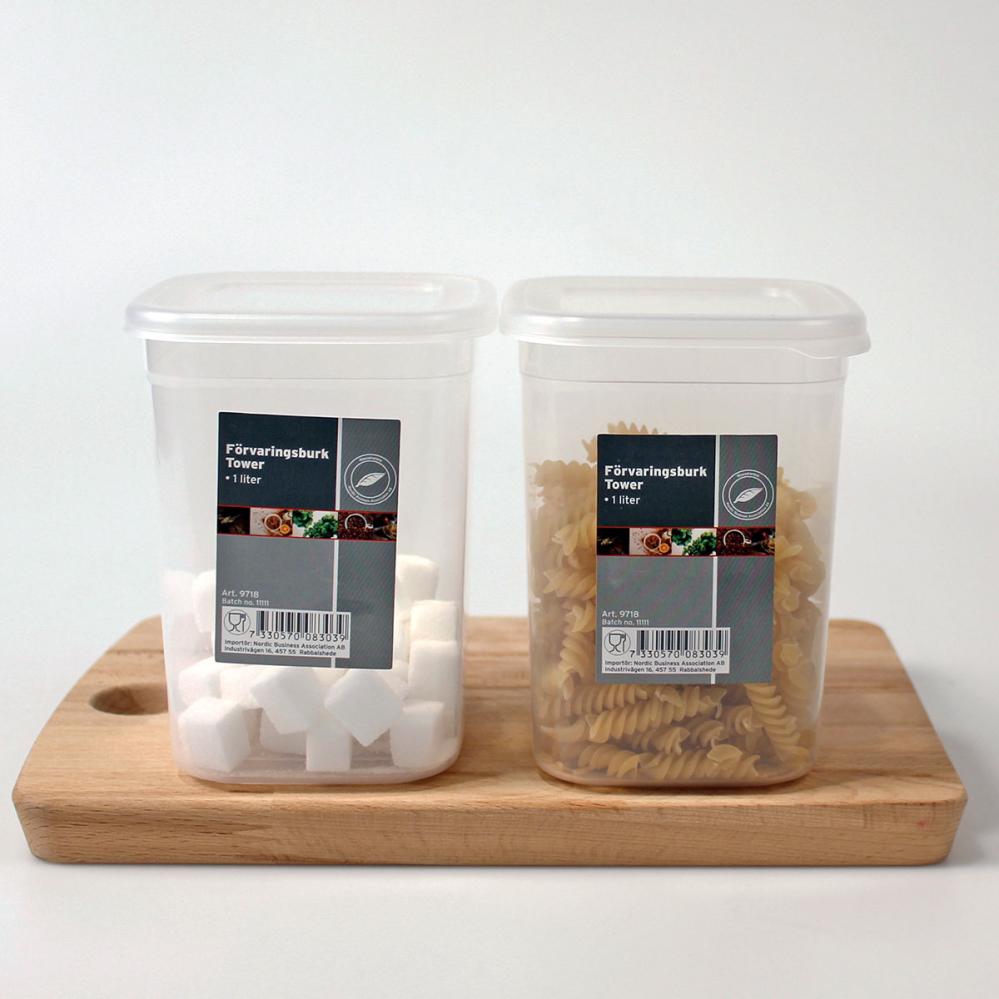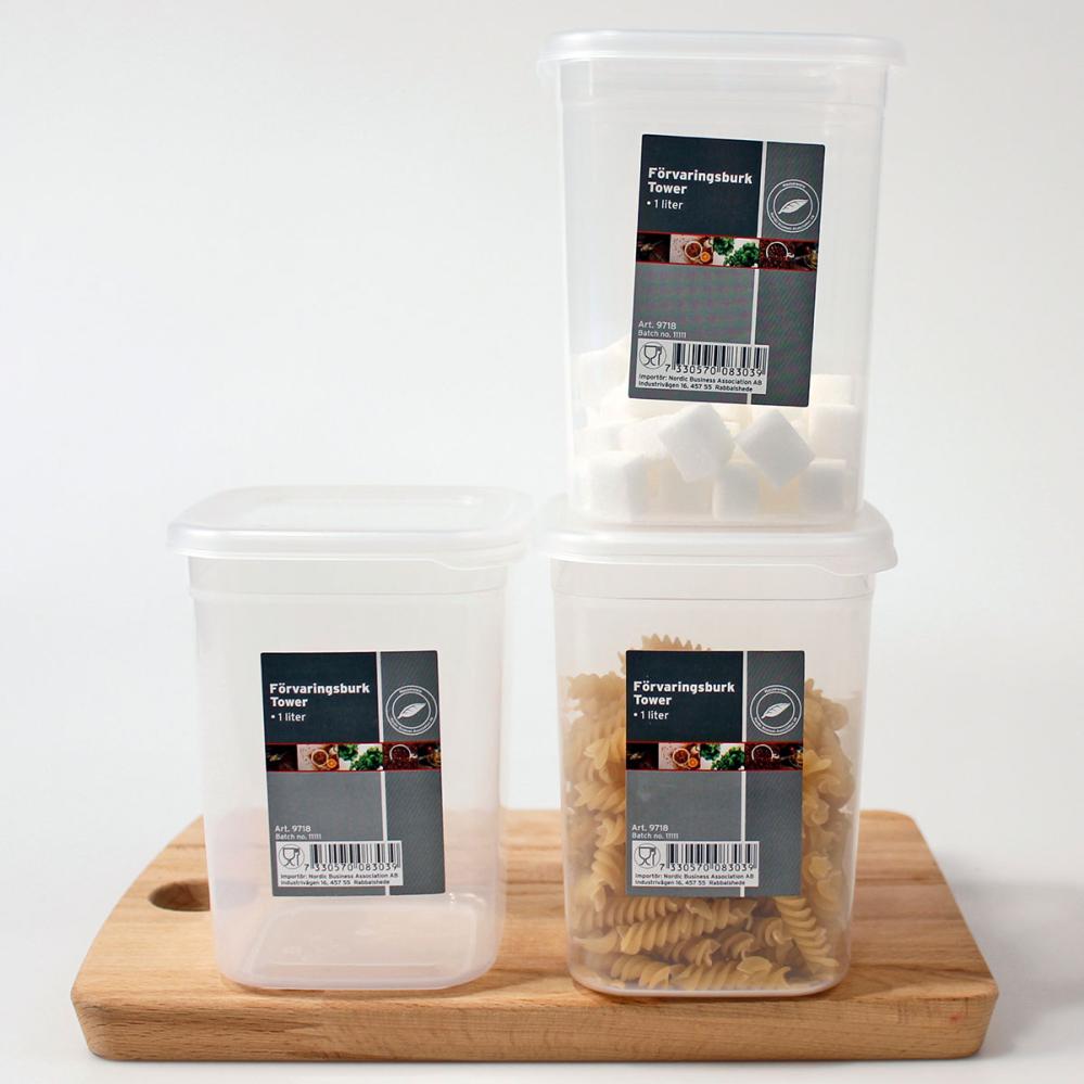 Keittiössä säilyttäminen on helppoa, kun 1 litran muovipurkkia käytetään kuivatarvikkeille ja muille pikkutavaroille. Kannen ansiosta muovipurkki pitää sisällön turvallisesti paikallaan. Säilytysastiana se sopii hyvin keittiön pientavaroille. Kannella varustettuna se toimii lisäksi muoviastiana kekseille ja muille leivonnaisille.