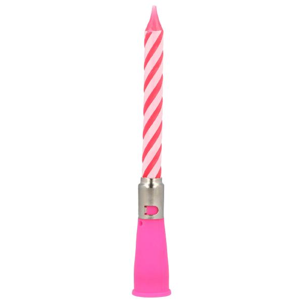 Tee juhlista hauskemmat musiikillisella kakkukynttilällä, joka käynnistyy heti, kun käännät pidikettä. Tämä äänellinen syntymäpäiväkynttilä yhdistää kynttiläpidikkeen vaaleanpunaiseen ja valkoiseen spiraalikuvioiseen kynttilään. Musiikkikynttilä, joka huomataan.