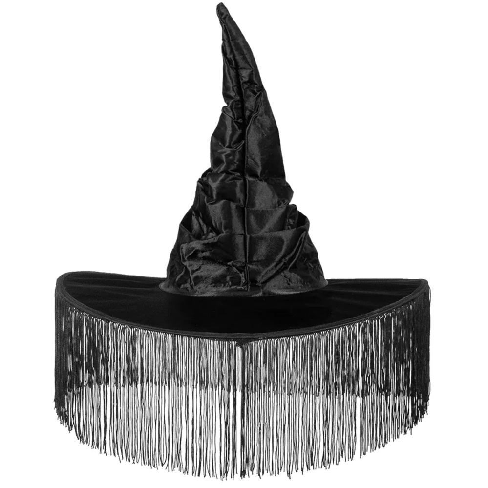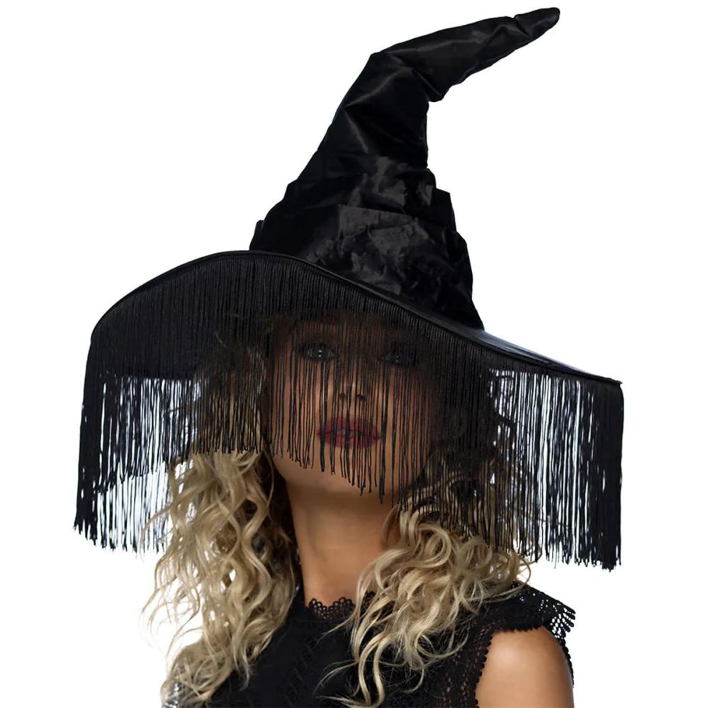 Viimeistele Halloween-asusi tällä aikuiskokoisella noitahatulla, täydellinen noitahattu naamiaisiin. Mustat hapsut ja tukeva muoto tekevät siitä tyylikkään ja tukevan asusteen juhliin.