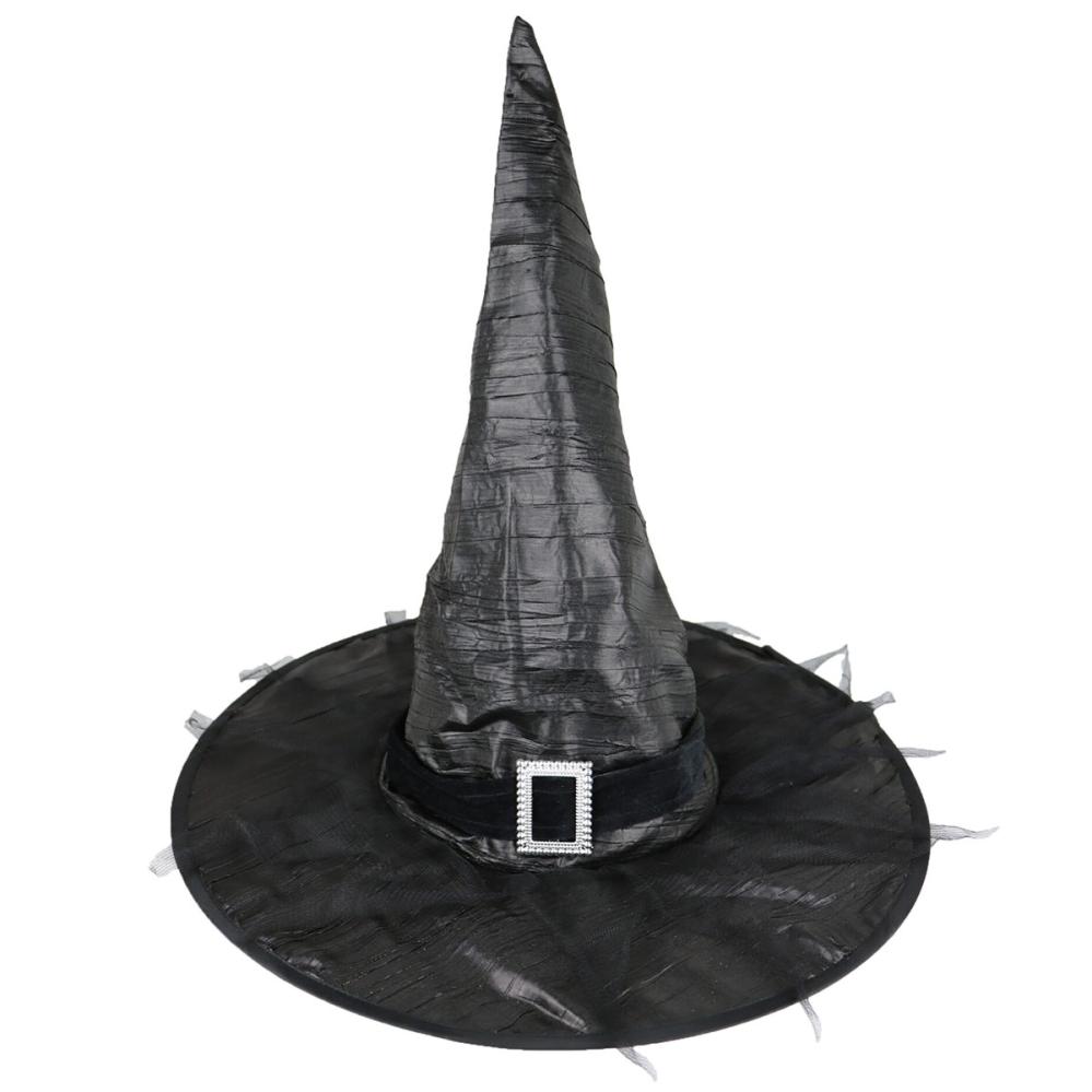 Anna Halloween-tyylillesi mystinen säväys mustalla aikuisten noitahatulla. Se on täydellinen, kun pukeudut Halloween-noidaksi, elegantin verkkokankaan, kiiltävän pinnan ja huomiota herättävän soljen ansiosta.