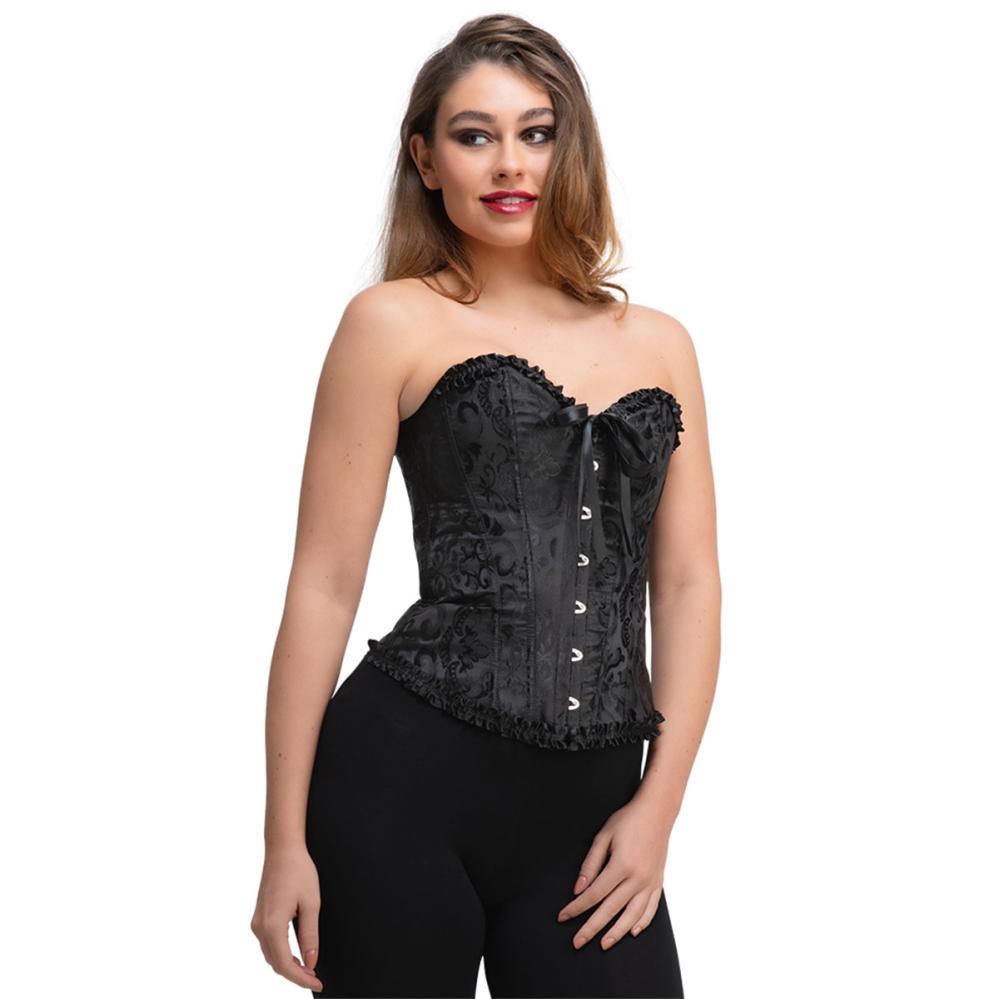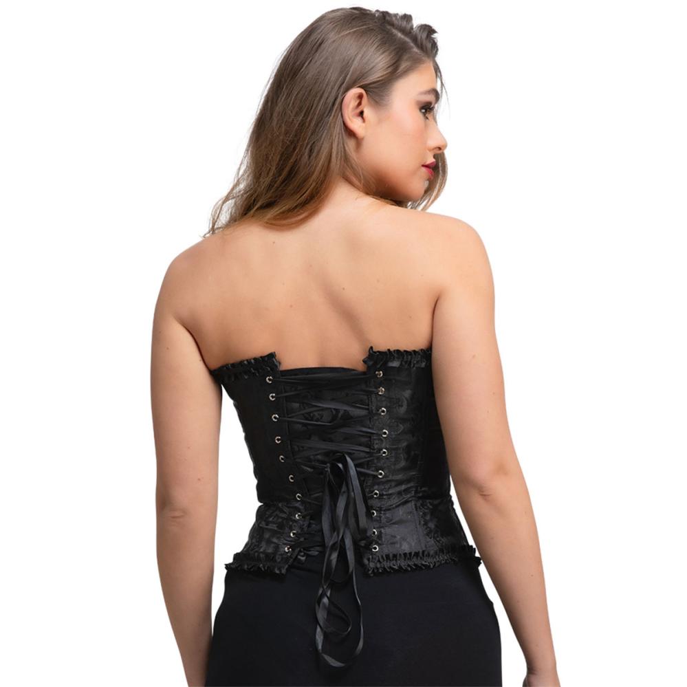 Tämä musta satiinikorsetti yhdistää tyylin ja mukavuuden, sillä sen elegantti nauhoitus takana varmistaa täydellisen istuvuuden. Nauhoitettu korsetti, joka sopii sekä juhliin että naamiaisasuksi sen erottuvien yksityiskohtien ansiosta.