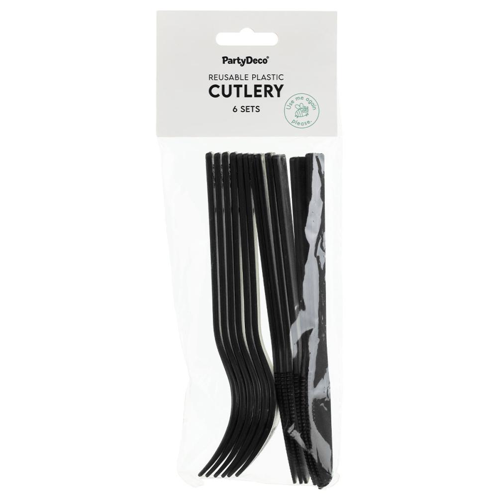 Mustat Uudelleenkäytettävät Muoviaterimet 12 kpl