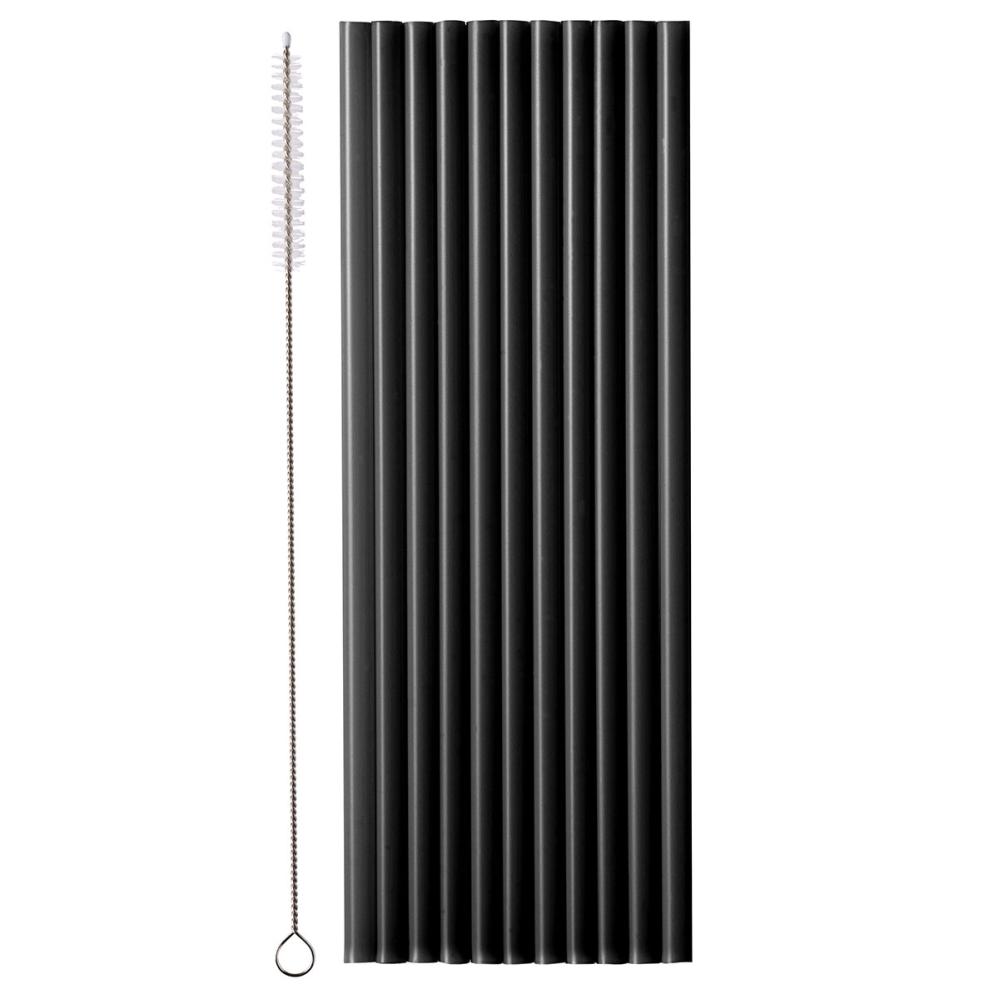 Pöydällä nämä kestävät ja uudelleenkäytettävät mustat muovipillit ovat yksityiskohta, joka saa jokaisen virvoitusjuoman näyttämään siltä, että se kuuluu elokuvapahiksen käteen Kovat mustat muovipillit tekevät loput ja antavat lasille sisääntulon, joka melkein varastaa koko kohtauksen.