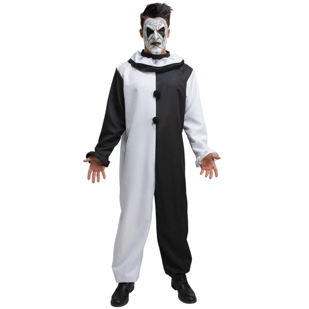 Nosta kauhutyyli keskiöön ensi Halloweenina tällä pelleasulla. Tämä mustavalkoinen pellehaalari, jossa on yhteensopiva naamio, saa sinut valmiiksi kaikkiin juhliin. Täydellinen pellenaamiaisasu maksimaalisen vaikutelman luomiseksi.