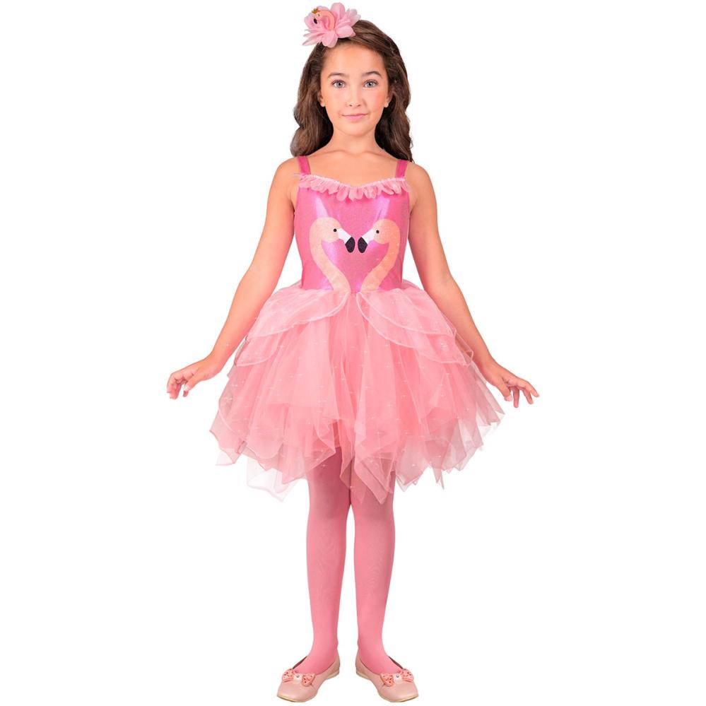Naamiaisasu Flamingo Lapsille on vaaleanpunainen lasten asu, jossa on flamingokuvio. Asuun kuuluu diadeemi, jossa on ulkoneva flamingo, ja tyllimekko.