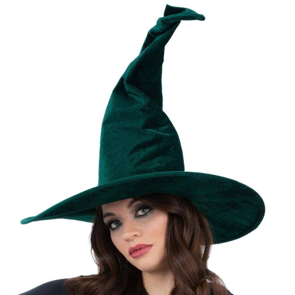 Viimeistele tyylisi smaragdinvihreällä, pehmeästä veluurista valmistetulla aikuisten noitahatulla. Muotoiltava kärki ja tukeva lieri tekevät tästä hatusta itseoikeutetun valinnan sille, joka haluaa pukeutua noidaksi seuraavana Halloweenina tai naamiaisissa.