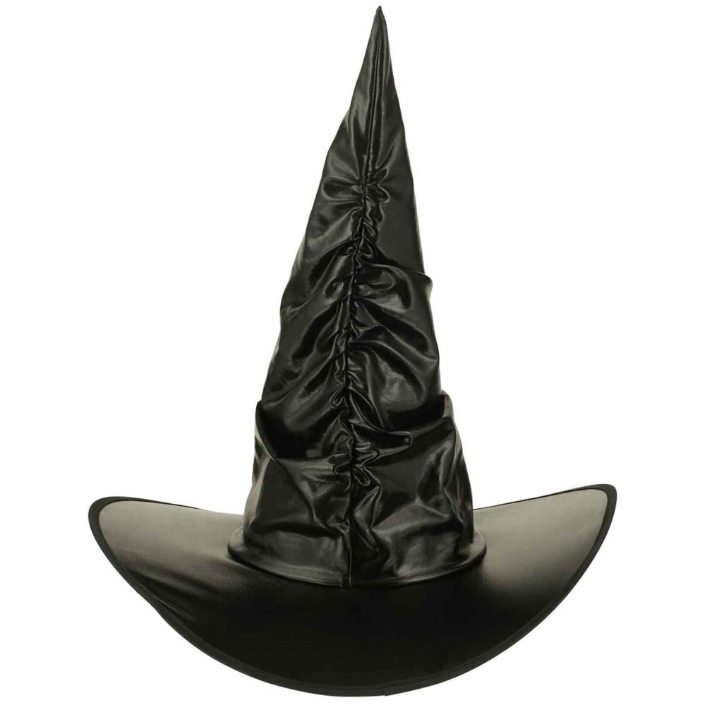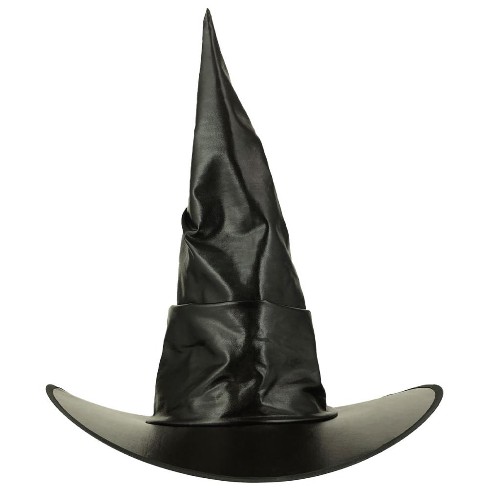 Viimeistele Halloween-noita-asusi mustalla noitahatulla aikuisten koossa. Kiiltävä viimeistely ja rypistynyt kärki tekevät siitä täydellisen noitahatun Halloween-naamiaisiin.