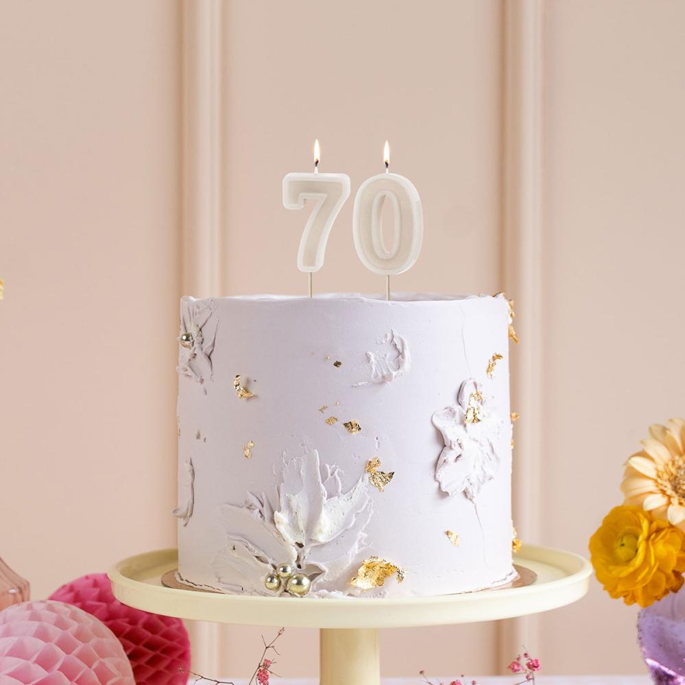 Numerokynttilä Lämmin Harmaa sisältää numeron muotoisen, lämpimän harmaan värisen kakkukynttilän.