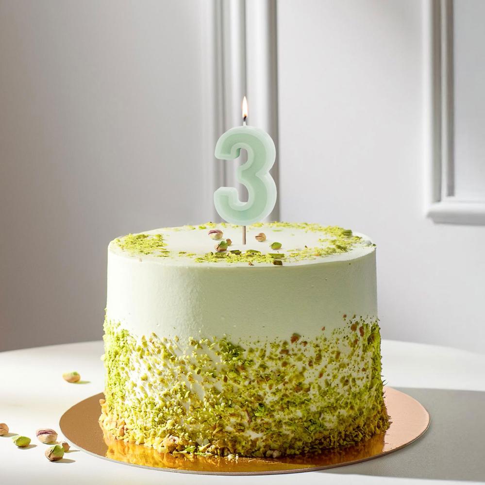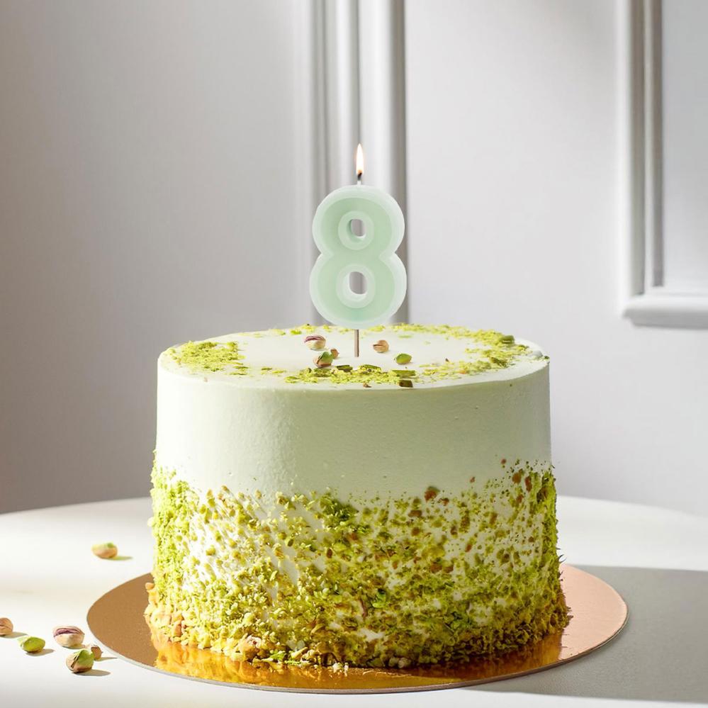 Numerokynttilä Vaaleanvihreä sisältää vaaleanvihreän numeron muotoisen kakkukynttilän.