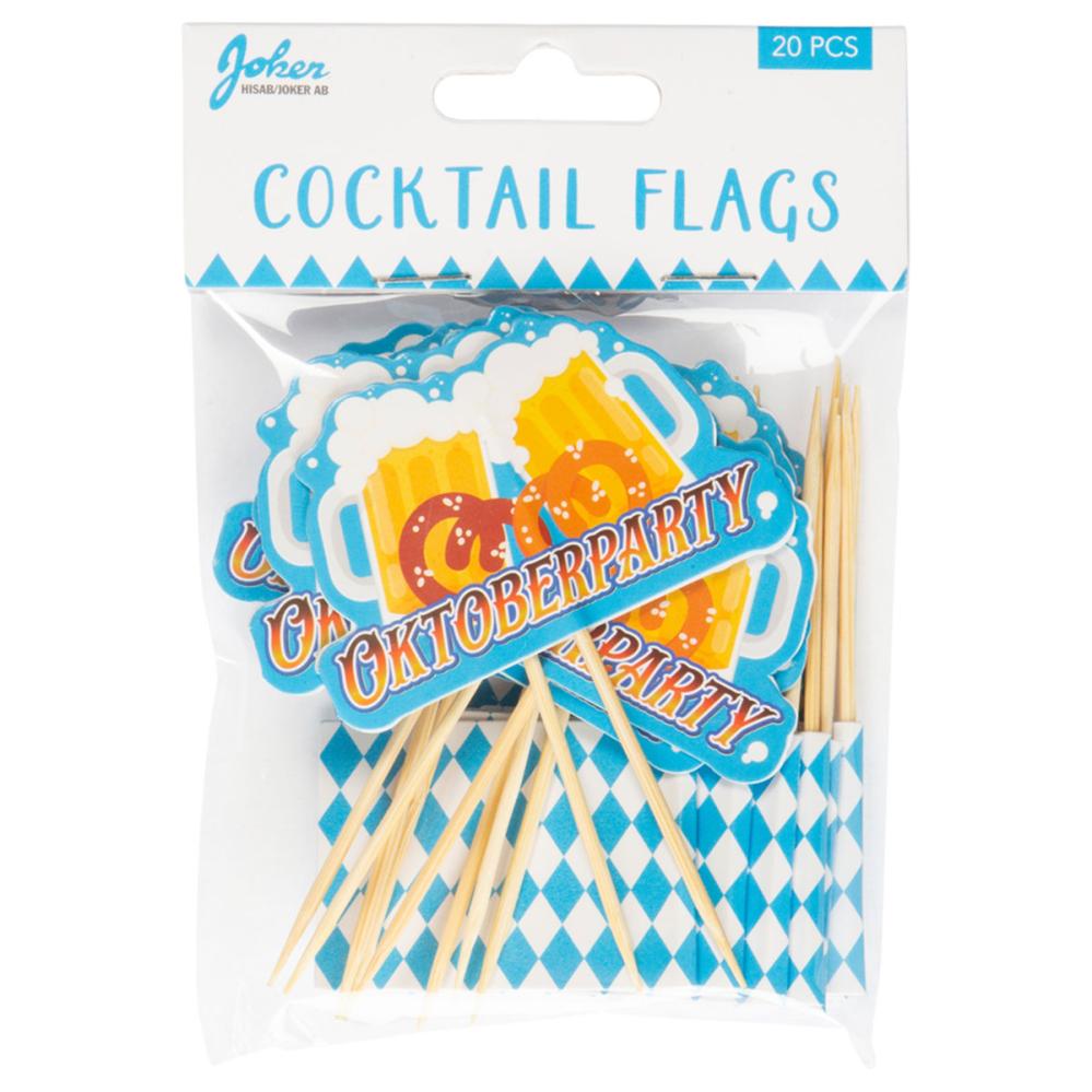 Oktoberfest Juhlatikut 20-kpl sisältää kaksikymmentä puutikkua, joista kymmenessä on baijerilaiset liput ja kymmenessä on kyltit, joita koristavat oluttuopit, pretzelit sekä teksti "OKTOBERPARTY".
